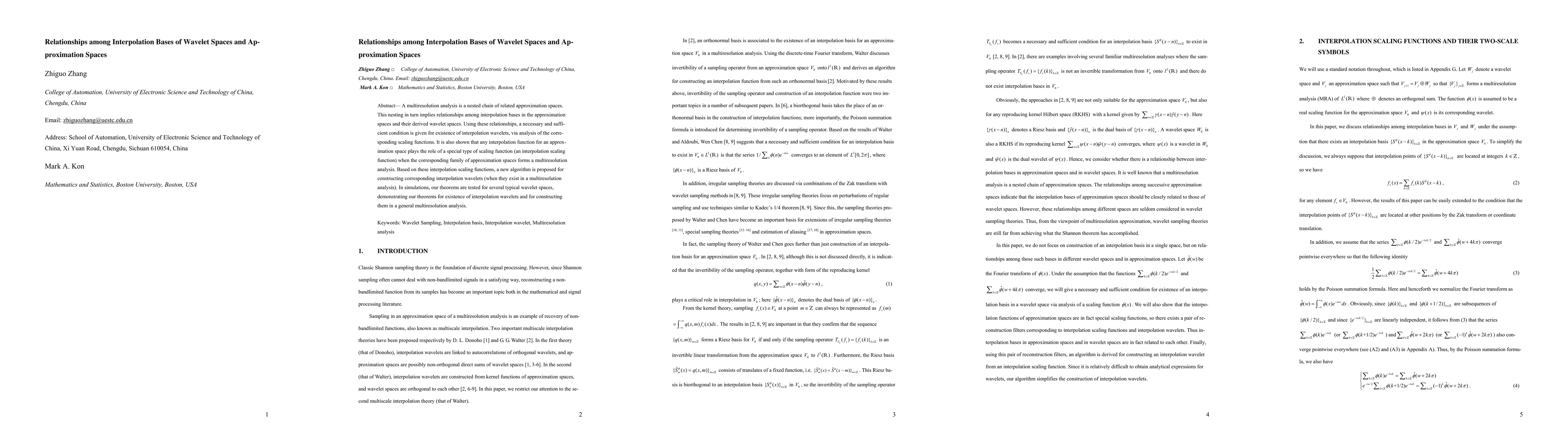 This paper explores the relationships between interpolation bases in approximation spaces and wavelet spaces within a multiresolution analysis framework. It proposes a necessary and sufficient condition for the existence of interpolation wavelets and introduces a new algorithm for constructing these wavelets based on interpolation scaling functions.
