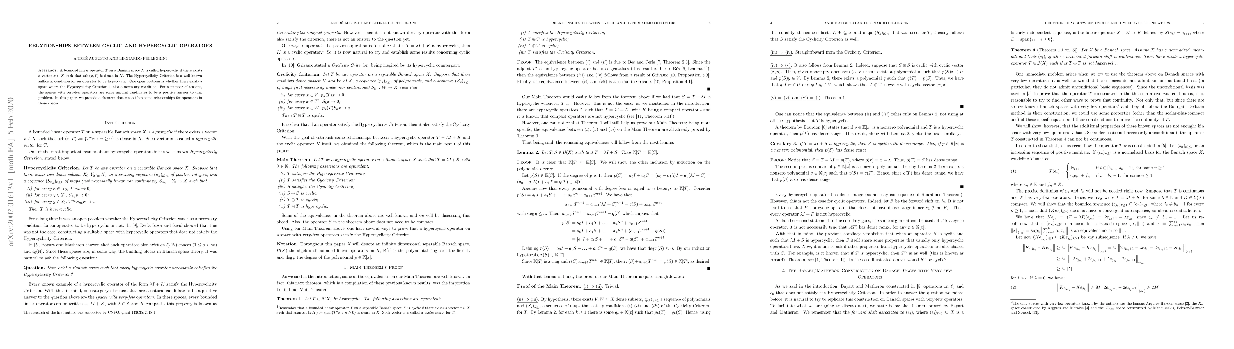A bounded linear operator $T$ on a Banach space $X$ is called hypercyclic if there exists a vector $x \in X$ such that $orb{(x,T)}$ is dense in $X$. The Hypercyclicity Criterion is a well-known sufficient condition for an operator to be hypercyclic. One open problem is whether there exists a space where the Hypercyclicity Criterion is also a necessary condition. For a number of reasons, the spaces with very-few operators are some natural candidates to be a positive answer to that problem. In this paper, we provide a theorem that establishes some relationships for operators in these spaces.