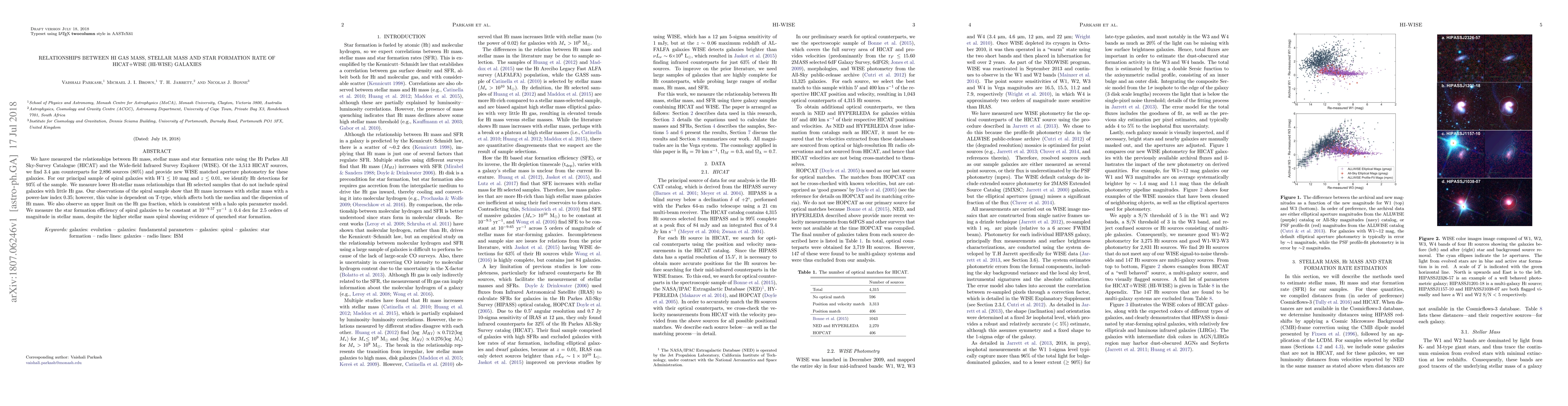 This study investigates the relationships between HI gas mass, stellar mass, and star formation rate in a sample of spiral galaxies using HICAT and WISE data. The findings reveal a power-law relationship between HI mass and stellar mass with an index of 0.35, showing that HI mass increases with stellar mass but varies with T-type. The star formation efficiency remains constant across a wide range of stellar masses.