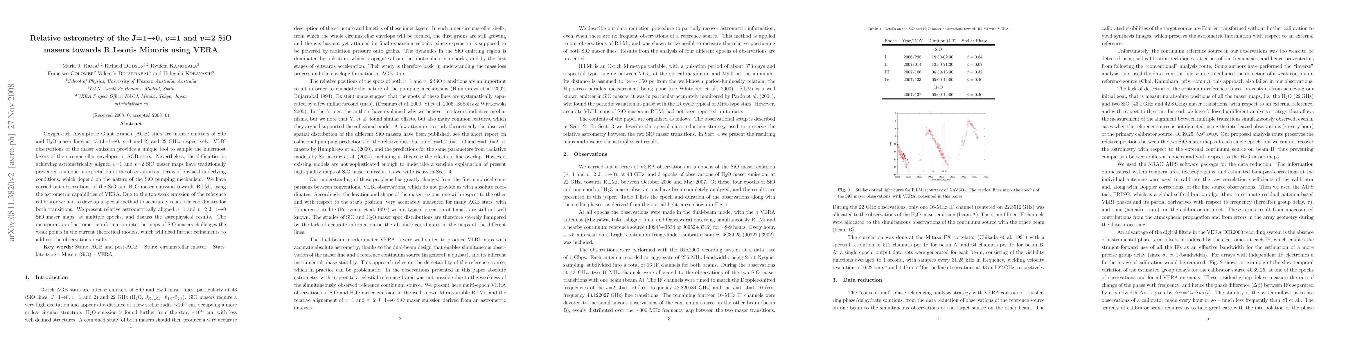 This paper presents relative astrometry of SiO maser emission (v=1 and v=2) towards R Leonis Minoris using VERA, achieving aligned maps to interpret the circumstellar envelope's physical conditions. The study challenges current theoretical models and suggests they require refinement to better match the observations.