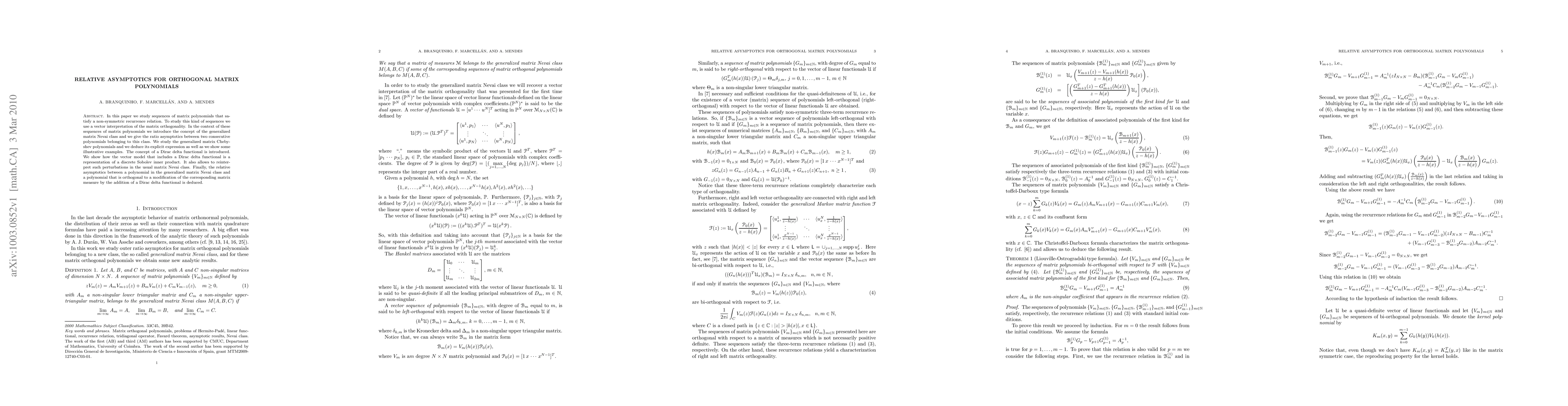 This paper investigates sequences of orthogonal matrix polynomials defined by non-symmetric recurrence relations, introducing the generalized matrix Nevai class and deriving their relative asymptotics. It also explores generalized matrix Chebyshev polynomials and uses a vector model with a Dirac delta functional to represent discrete Sobolev inner products.