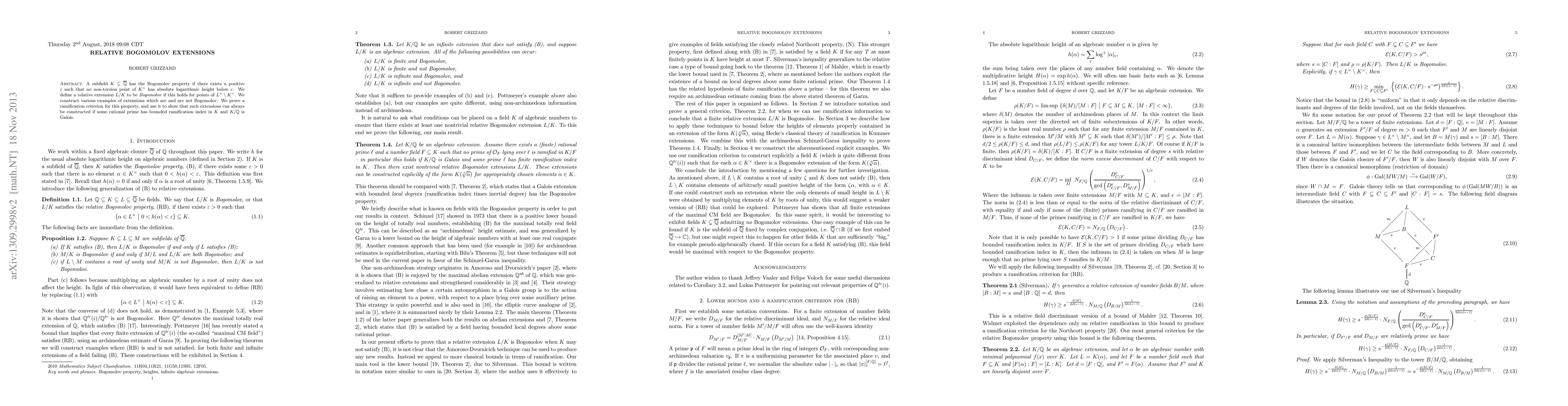 This paper defines relative Bogomolov extensions and explores their properties, providing examples and constructing extensions that possess or lack this property. It also establishes a ramification criterion, proving that such extensions can be constructed when a rational prime has bounded ramification index in a Galois field extension over Q.