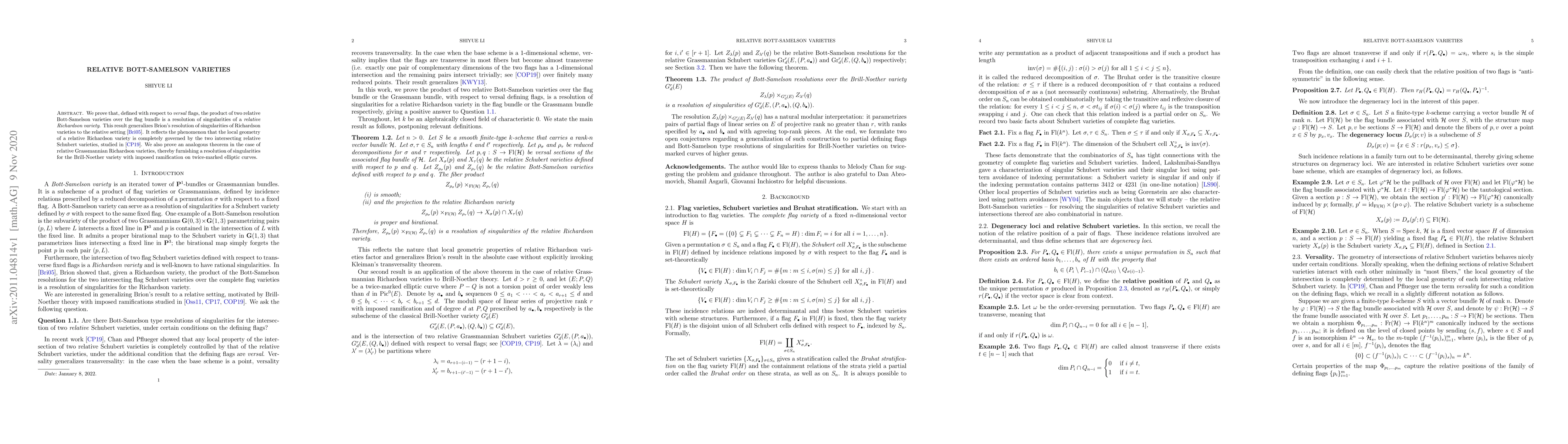 The paper proves that the product of two relative Bott-Samelson varieties over a flag bundle resolves singularities of a relative Richardson variety, generalizing Brion's resolution in the relative setting. It also provides a resolution for relative Grassmannian Richardson varieties, specifically resolving singularities of the Brill-Noether variety for twice-marked elliptic curves.