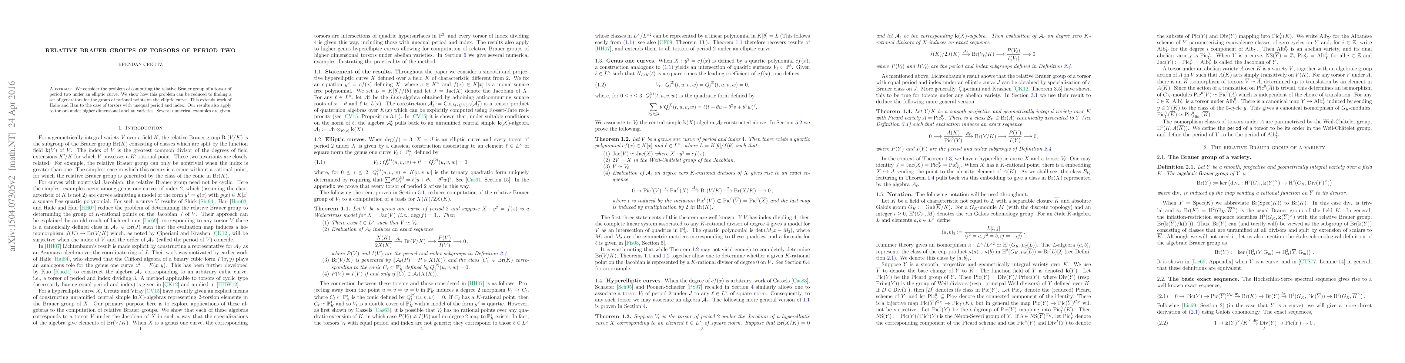 The paper introduces a reduction of the relative Brauer group computation for torsors of period 2 to the group of rational points on the base elliptic curve, along with explicit numerical examples.
