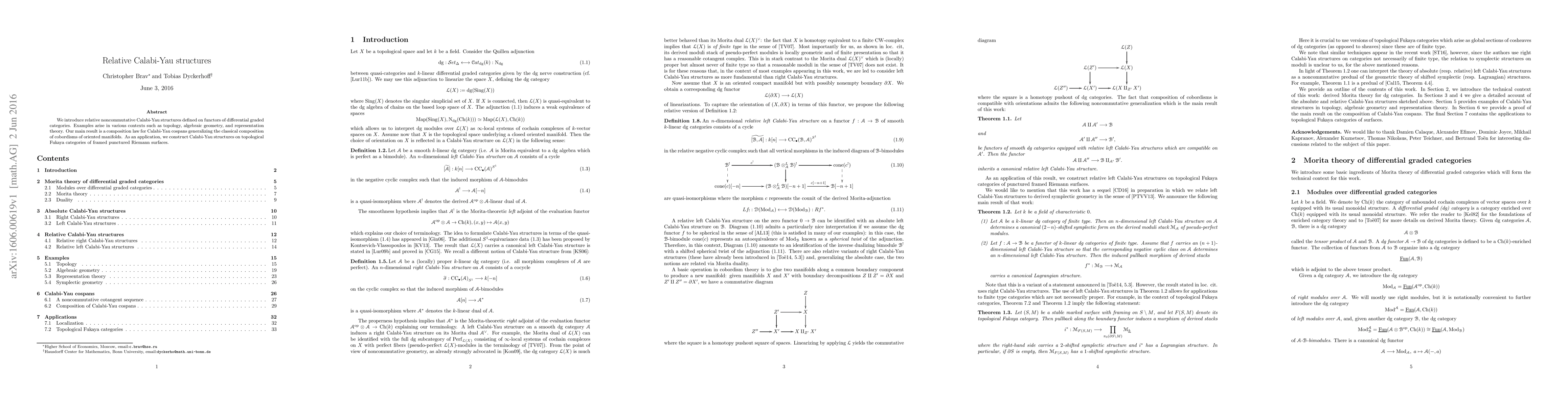The paper introduces relative noncommutative Calabi-Yau structures on functors of differential graded categories and presents a composition law for these structures, generalizing classical cobordism composition. It applies this framework to construct Calabi-Yau structures on topological Fukaya categories of framed punctured Riemann surfaces.