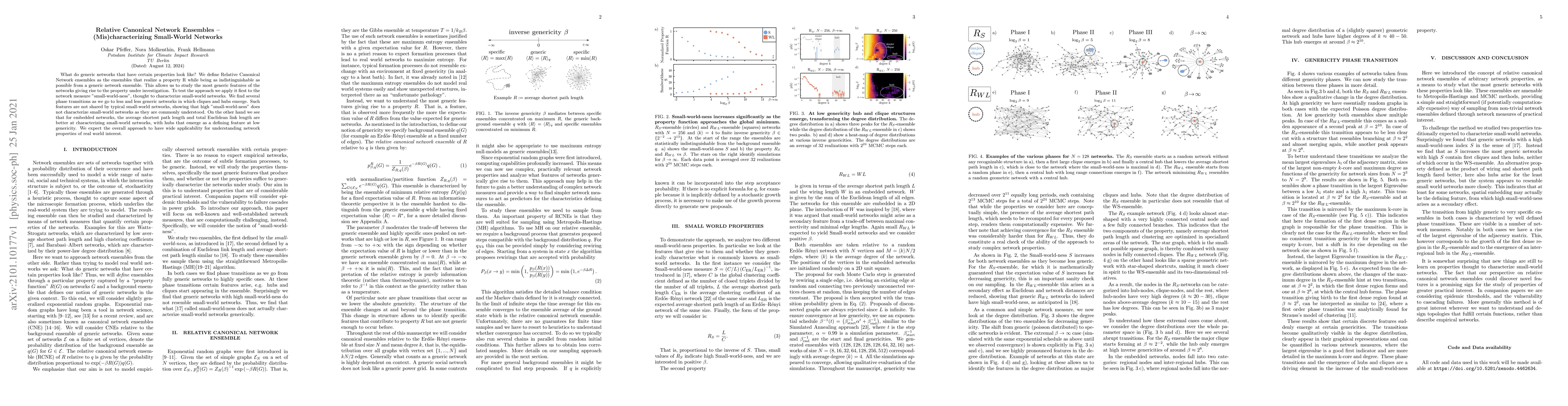 What do generic networks that have certain properties look like? We define Relative Canonical Network ensembles as the ensembles that realize a property R while being as indistinguishable as possible from a generic network ensemble. This allows us to study the most generic features of the networks giving rise to the property under investigation. To test the approach we apply it first to the network measure "small-world-ness", thought to characterize small-world networks. We find several phase transitions as we go to less and less generic networks in which cliques and hubs emerge. Such features are not shared by typical small-world networks, showing that high "small-world-ness" does not characterize small-world networks as they are commonly understood. On the other hand we see that for embedded networks, the average shortest path length and total Euclidean link length are better at characterizing small-world networks, with hubs that emerge as a defining feature at low genericity. We expect the overall approach to have wide applicability for understanding network properties of real world interest.
