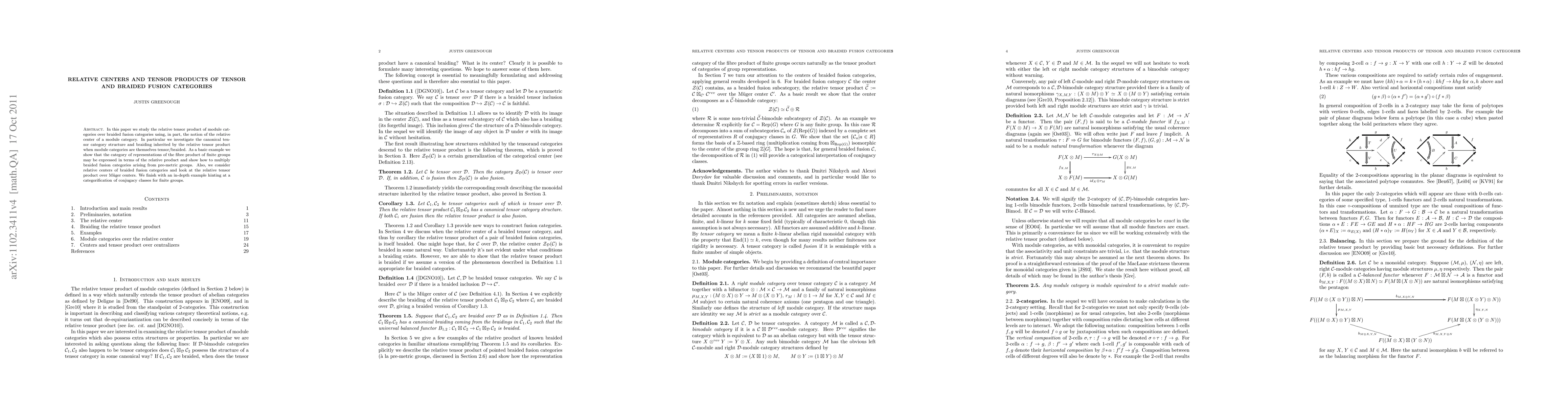 This paper examines the relative tensor product of module categories over braided fusion categories, focusing on the inherited tensor category structure and braiding. It illustrates the relative product through the category of representations of finite group fibre products and explores the relative centers and tensor products over Muger centers.