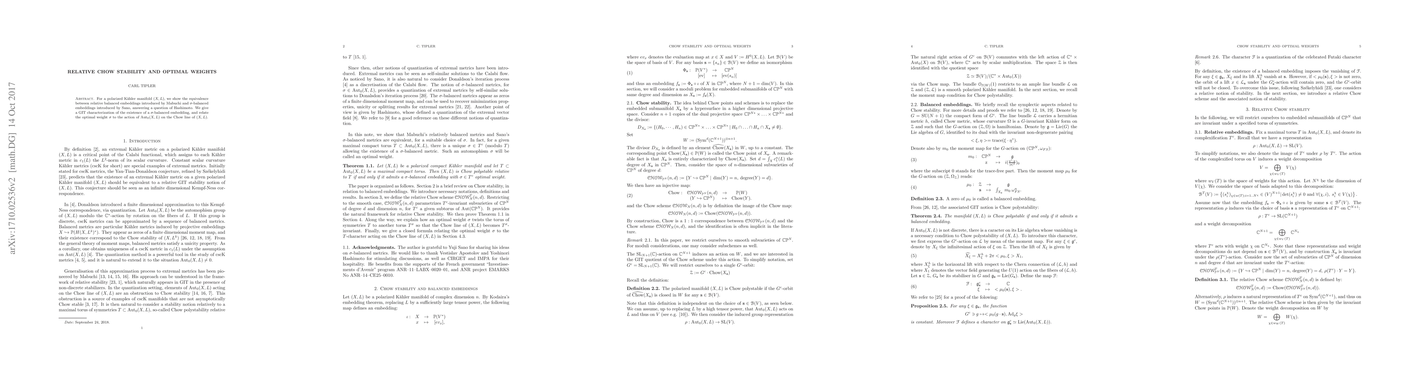 For a polarized K\"ahler manifold $(X, L)$, we show the equivalence between relative balanced embeddings introduced by Mabuchi and $\sigma$-balanced embeddings introduced by Sano, answering a question of Hashimoto. We give a GIT characterization of the existence of a $\sigma$-balanced embedding, and relate the optimal weight $\sigma$ to the action of $\mathrm{Aut}_0(X,L)$ on the Chow line of $(X, L)$.