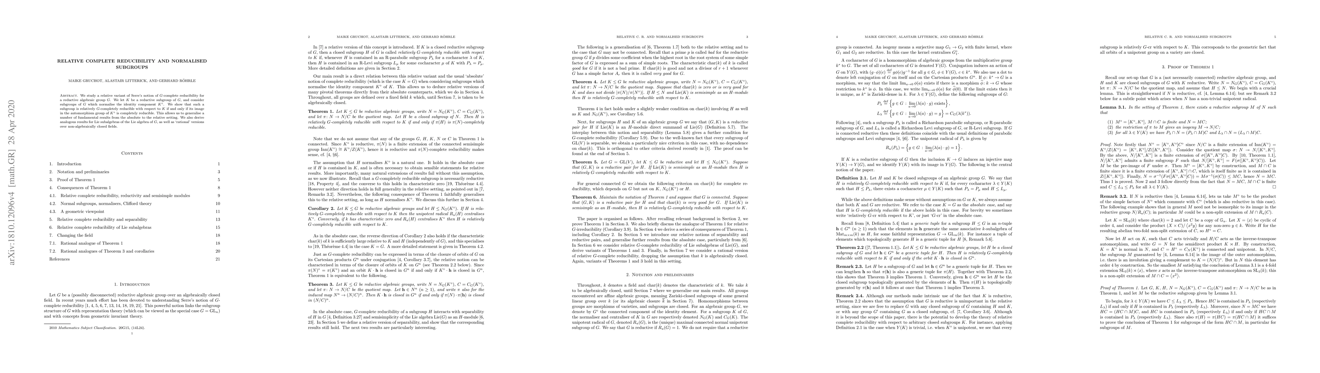 This paper explores a relative form of Serre's concept of $G$-complete reducibility for reductive algebraic groups $G$ with respect to a reductive subgroup $K$. It proves that a subgroup normalising $K^{\circ}$ is relatively $G$-completely reducible if its image in the automorphism group of $K^{\circ}$ is completely reducible, thereby generalising fundamental results to the relative setting.