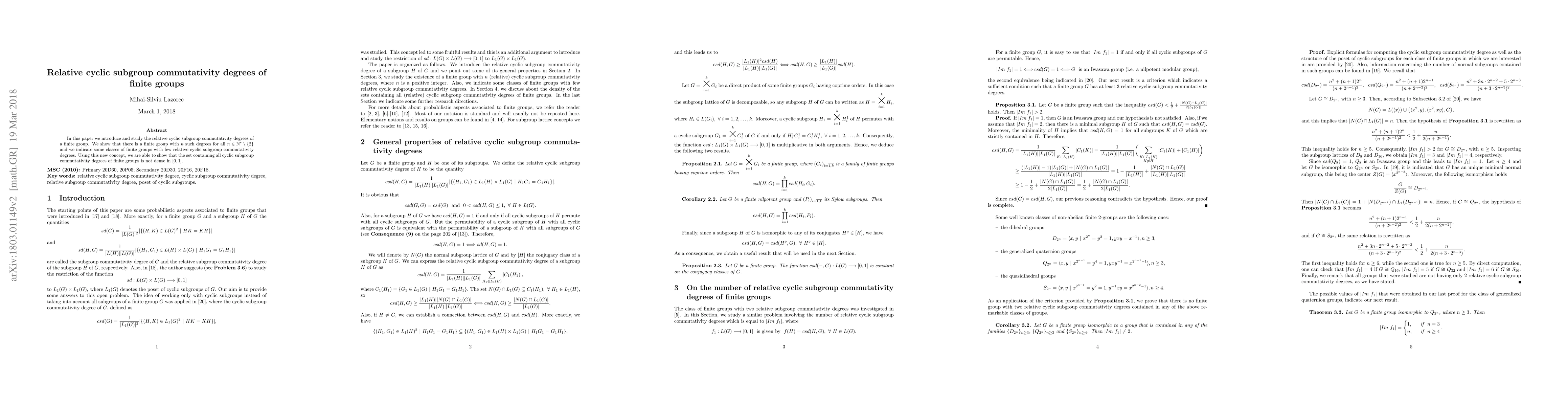 This paper introduces and studies the relative cyclic subgroup commutativity degrees of finite groups, demonstrating that for all natural numbers except 2, there exists a group with exactly those many degrees. It also shows that the set of all cyclic subgroup commutativity degrees of finite groups is not dense in the interval [0, 1].