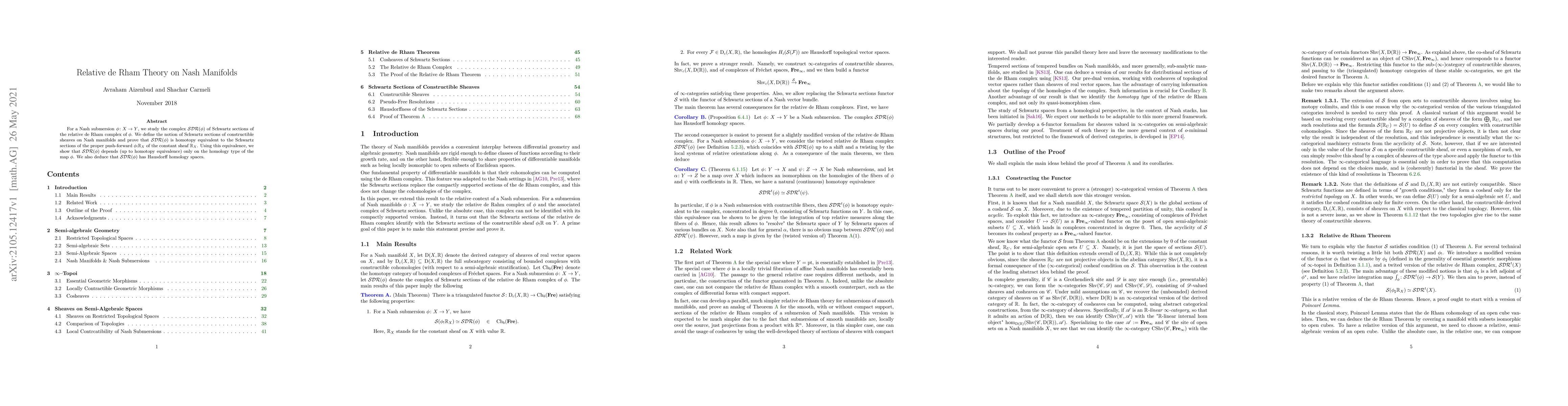 This paper investigates the relative de Rham theory on Nash manifolds through the complex $\mathcal{SDR}(\phi)$ of Schwartz sections of the relative de Rham complex. It establishes a homotopy equivalence between $\mathcal{SDR}(\phi)$ and the Schwartz sections of the proper push-forward of the constant sheaf, showing that $\mathcal{SDR}(\phi)$ is determined by the homology type of $\phi$ and possesses Hausdorff homology spaces.