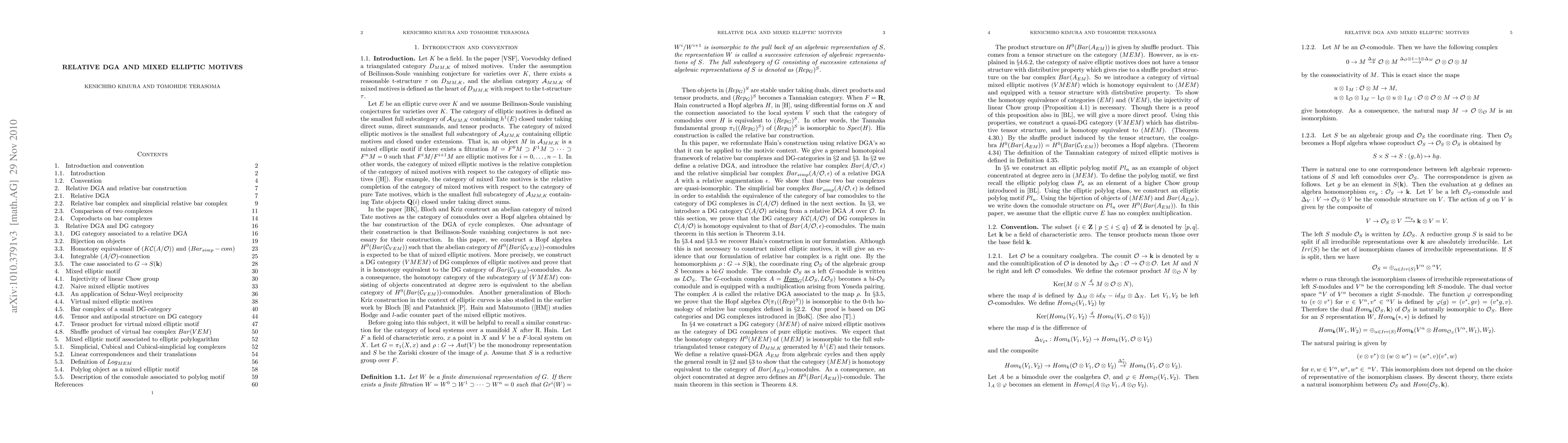 This paper generalizes the construction of mixed Tate motives to define mixed elliptic motives as a Tannakian category generated by an elliptic curve, using a relative DGA over a reductive group. The category is characterized by comodules over a relative bar construction of a DGA $A_{EM}$ derived from cycle complexes, with the elliptic polylogarithm serving as a notable object within it.