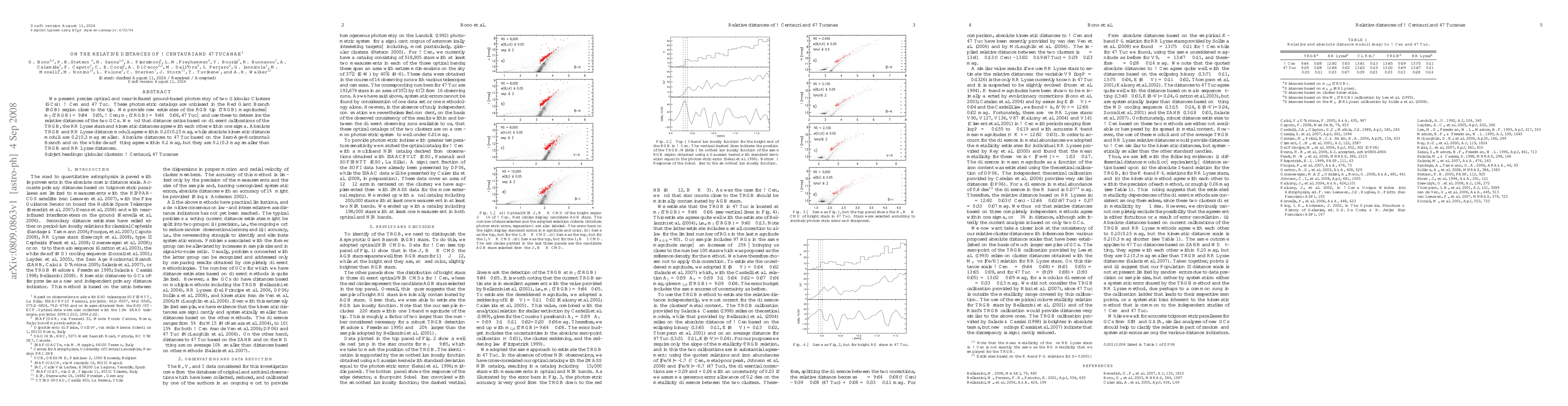 This study provides precise photometry for two globular clusters, Omega Centauri and 47 Tucanae, allowing for the determination of their relative distances with accuracy within 0.1-0.3 magnitudes.
