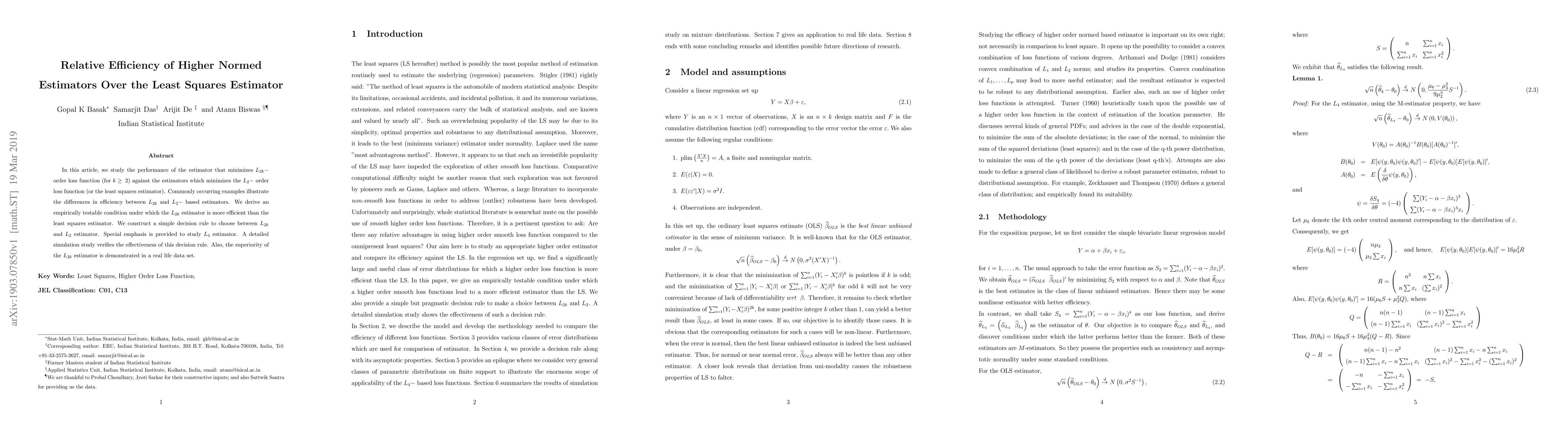 The study compares the performance of $L_{2k}$ estimators to least squares estimators, finding that $L_{2k}$ estimators can be more efficient under certain conditions, particularly for $L_{4}$ estimator. A decision rule is proposed to choose between $L_{2k}$ and $L_2$ estimators based on empirical testing and real-life data.