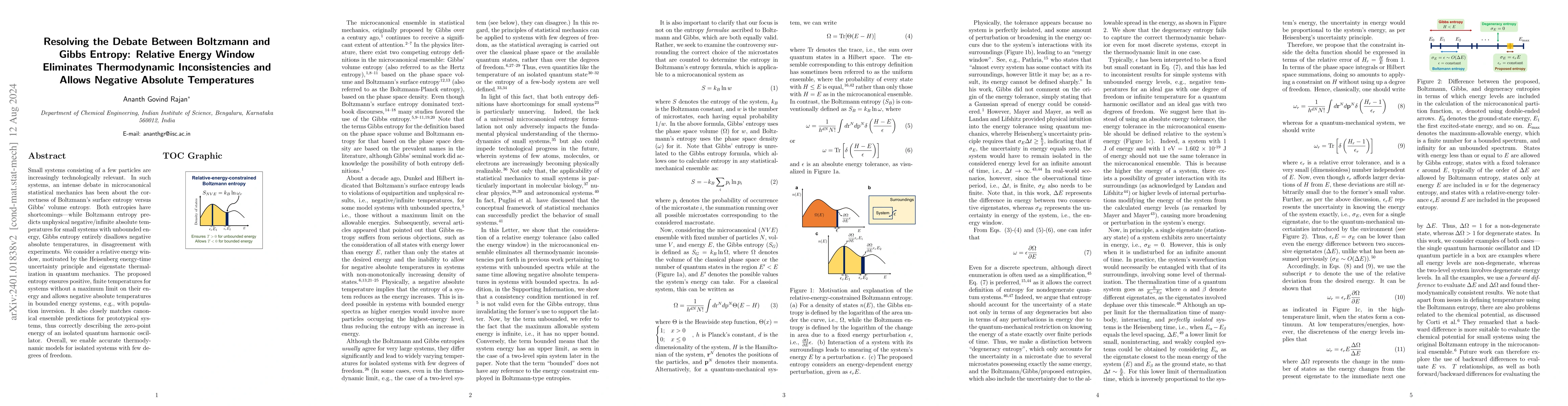 Over the past century, an intense debate in statistical mechanics has been about the correctness of Boltzmann's surface entropy versus Gibbs' volume entropy, for isolated systems. Both entropies make significantly different predictions for systems with few degrees of freedom. Even in the thermodynamic limit, they can disagree-while Boltzmann entropy allows negative absolute temperatures to exist, Gibbs entropy precludes such a possibility. Here, we show that modifying Boltzmann's entropy via a relative energy tolerance eliminates thermodynamic inconsistencies in several model systems with unbounded energy spectra by ensuring positive, finite temperatures. Concomitantly, the proposed entropy allows for negative temperatures in systems with bounded spectra and closely matches canonical ensemble predictions. This work conclusively remedies the prevalent deficiencies of the Gibbs and Boltzmann entropy formulations and paves the way for the use of the modified Boltzmann entropy in the microcanonical ensemble, allowing negative temperatures to exist.
