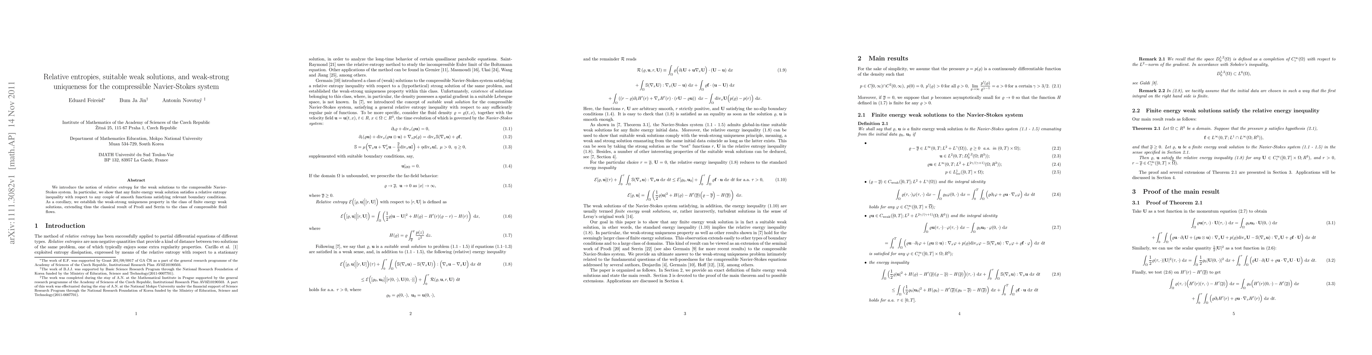 This paper introduces the concept of relative entropy for weak solutions of the compressible Navier-Stokes system, proving that finite energy weak solutions satisfy a relative entropy inequality. It also establishes a weak-strong uniqueness principle for the system.