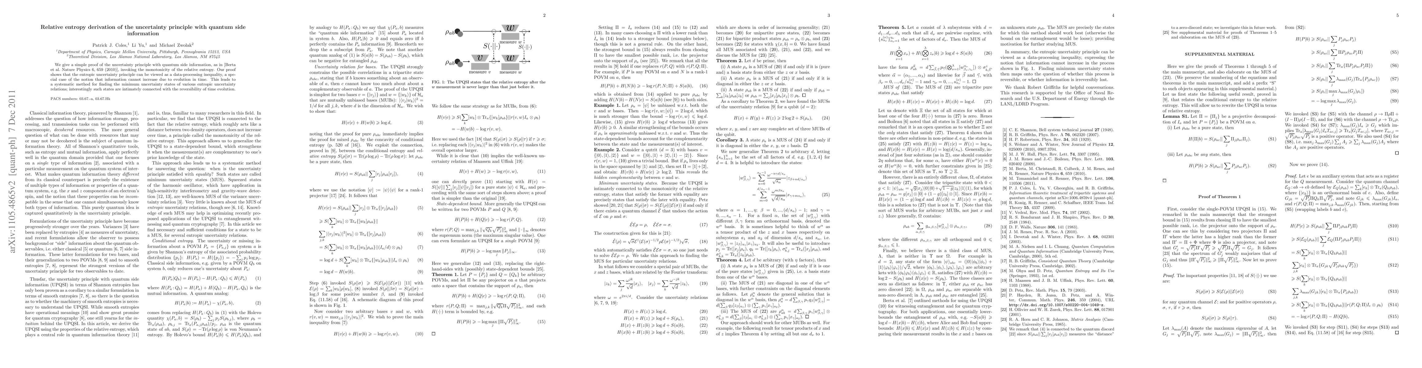 This paper presents a straightforward proof of the uncertainty principle with quantum side information using relative entropy monotonicity. It reveals that the entropic uncertainty principle is a form of information non-increase, providing a systematic approach to find minimum uncertainty states for various entropic uncertainty relations. These states are linked to reversible time evolution.