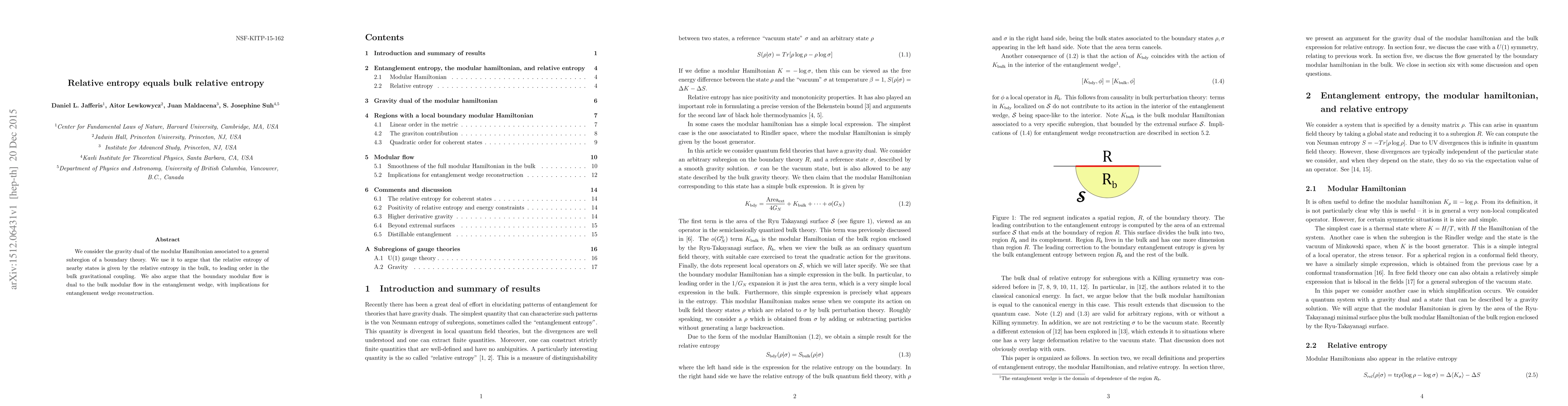 This paper demonstrates that the relative entropy between nearby states in a boundary theory is equivalent to the bulk relative entropy, leading to the conclusion that the boundary modular flow corresponds to the bulk modular flow in the entanglement wedge, with significant implications for entanglement wedge reconstruction.