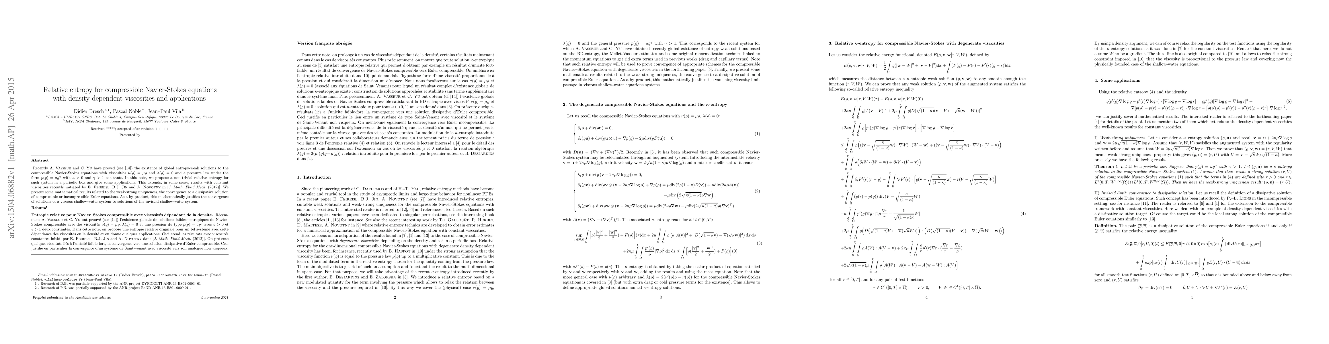 This paper introduces a new relative entropy for compressible Navier-Stokes equations with density-dependent viscosities, proving global entropy-weak solutions' existence. It extends previous results on constant viscosities and provides applications including weak-strong uniqueness and convergence to Euler equations.