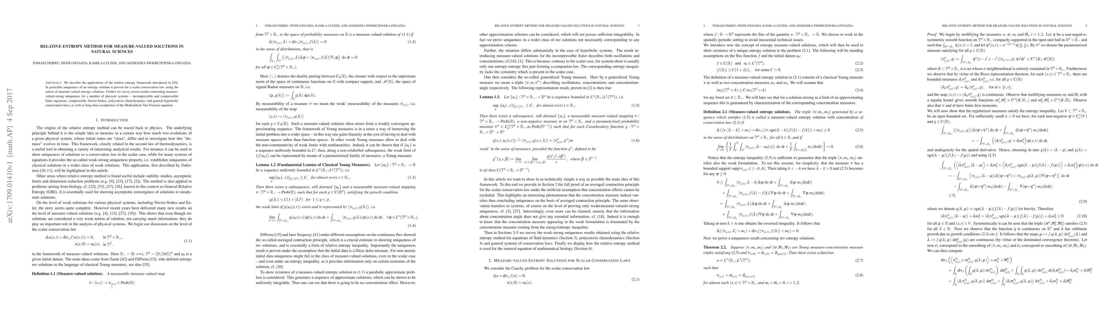 This paper explores the application of relative entropy methods to establish uniqueness for entropy solutions in scalar conservation laws and measure-valued solutions. It also surveys strong uniqueness and long-term behaviors in various physical systems, including Euler and Navier-Stokes equations, and the McKendrick-Von Foerster equation.