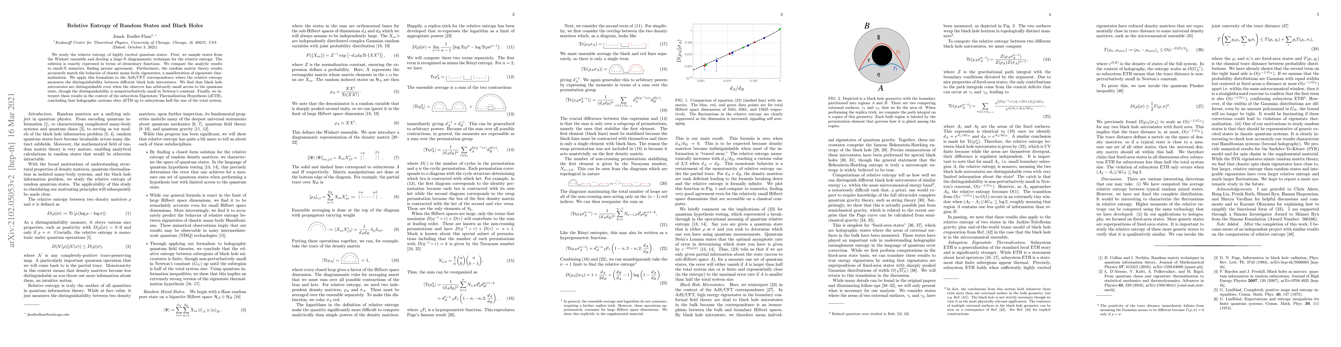 We study the relative entropy of highly excited quantum states. First, we sample states from the Wishart ensemble and develop a large-N diagrammatic technique for the relative entropy. The solution is exactly expressed in terms of elementary functions. We compare the analytic results to small-N numerics, finding precise agreement. Furthermore, the random matrix theory results accurately match the behavior of chaotic many-body eigenstates, a manifestation of eigenstate thermalization. We apply this formalism to the AdS/CFT correspondence where the relative entropy measures the distinguishability between different black hole microstates. We find that black hole microstates are distinguishable even when the observer has arbitrarily small access to the quantum state, though the distinguishability is nonperturbatively small in Newton's constant. Finally, we interpret these results in the context of the subsystem Eigenstate Thermalization Hypothesis (sETH), concluding that holographic systems obey sETH up to subsystems half the size of the total system.