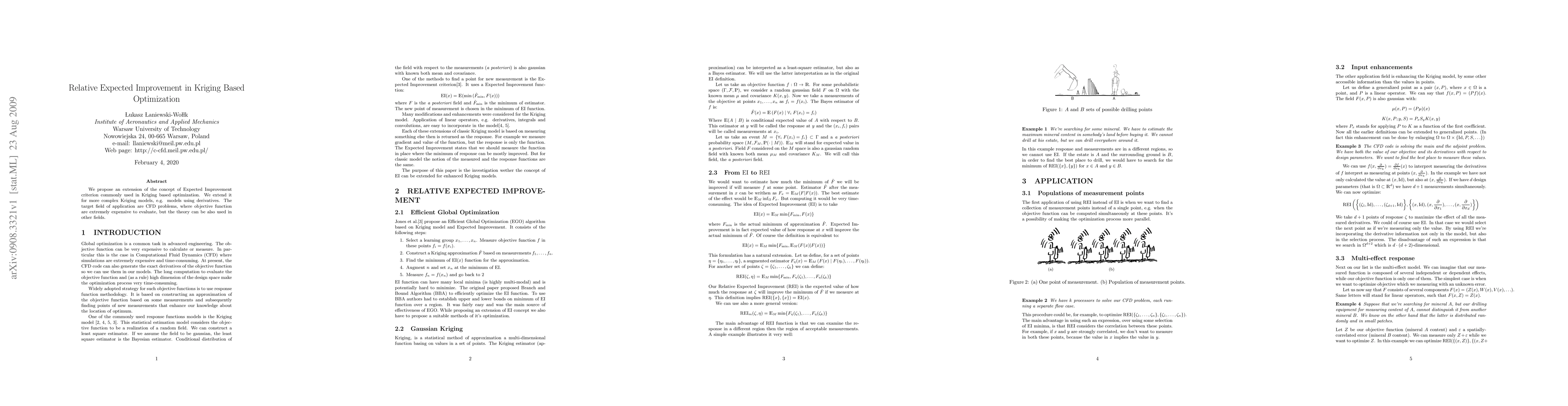 We propose an extension of the concept of Expected Improvement criterion commonly used in Kriging based optimization. We extend it for more complex Kriging models, e.g. models using derivatives. The target field of application are CFD problems, where objective function are extremely expensive to evaluate, but the theory can be also used in other fields.