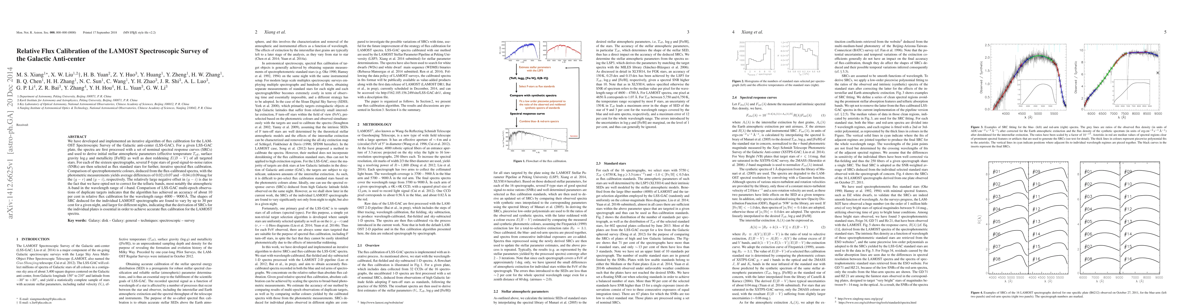 We have developed and implemented an iterative algorithm of flux calibration for the LAMOST Spectroscopic Survey of the Galactic anti-center (LSS-GAC). For a given LSS-GAC plate, the spectra are first processed with a set of nominal spectral response curves (SRCs) and used to derive initial stellar atmospheric parameters (effective temperature $T_{\rm eff}$, surface gravity log\,$g$ and metallicity [Fe/H]) as well as dust reddening $E(B-V)$ of all targeted stars. For each of the sixteen spectrographs, several F-type stars of good signal-to-noise ratios (SNRs) are then selected as flux standard stars for further, iterative spectral flux calibration. Comparison of spectrophotometric colours, deduced from the flux-calibrated spectra, with the photometric measurements yields average differences of 0.02$\pm$0.07 and $-$0.04$\pm$0.09\,mag for the $(g-r)$ and $(g-i)$, respectively. The relatively large negative offset in $(g-i)$ is due to the fact that we have opted not to correct for the telluric bands, most notably the atmospheric A-band in the wavelength range of $i$-band. Comparison of LSS-GAC multi-epoch observations of duplicate targets indicates that the algorithm has achieved an accuracy of about 10 per cent in relative flux calibration for the wavelength range 4000 -- 9000\,\AA. The shapes of SRC deduced for the individual LAMOST spectrographs are found to vary by up to 30 per cent for a given night, and larger for different nights, indicating that the derivation of SRCs for the individual plates is essential in order to achieve accurate flux calibration for the LAMOST spectra.