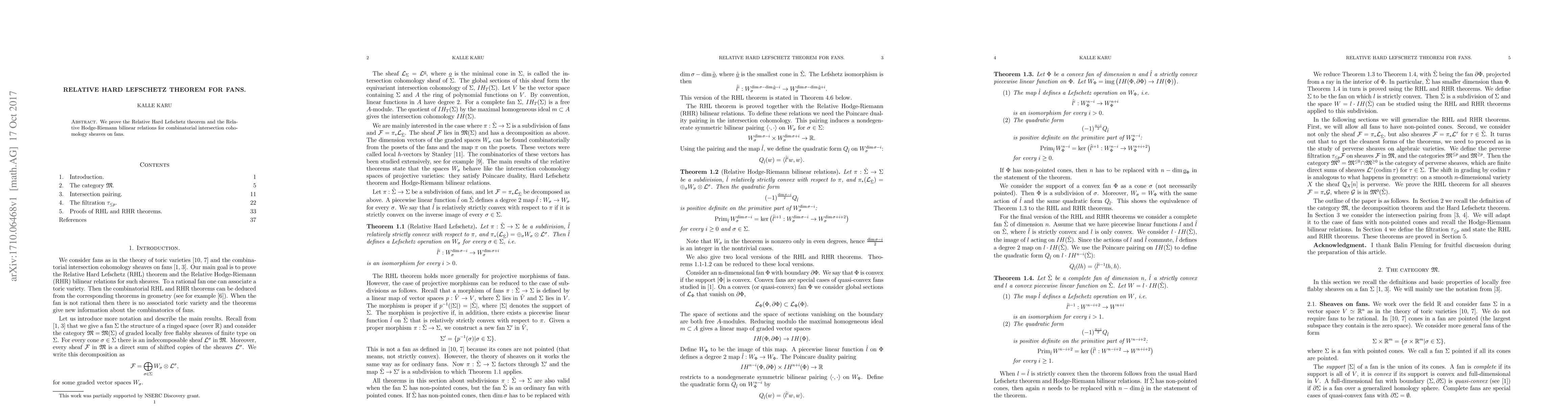 This paper proves the Relative Hard Lefschetz theorem and the Relative Hodge-Riemann bilinear relations for combinatorial intersection cohomology sheaves associated with fans, contributing to the intersection theory in algebraic geometry.
