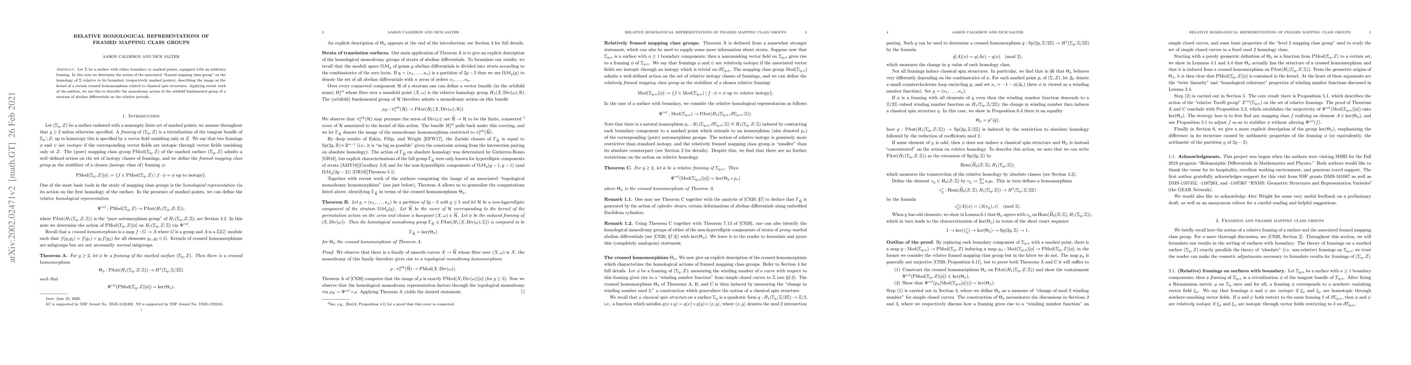 This paper determines the action of the framed mapping class group on the homology of a surface with framing, identifying the image as the kernel of a crossed homomorphism tied to classical spin structures. It also describes the monodromy action of the orbifold fundamental group on relative periods using recent findings.