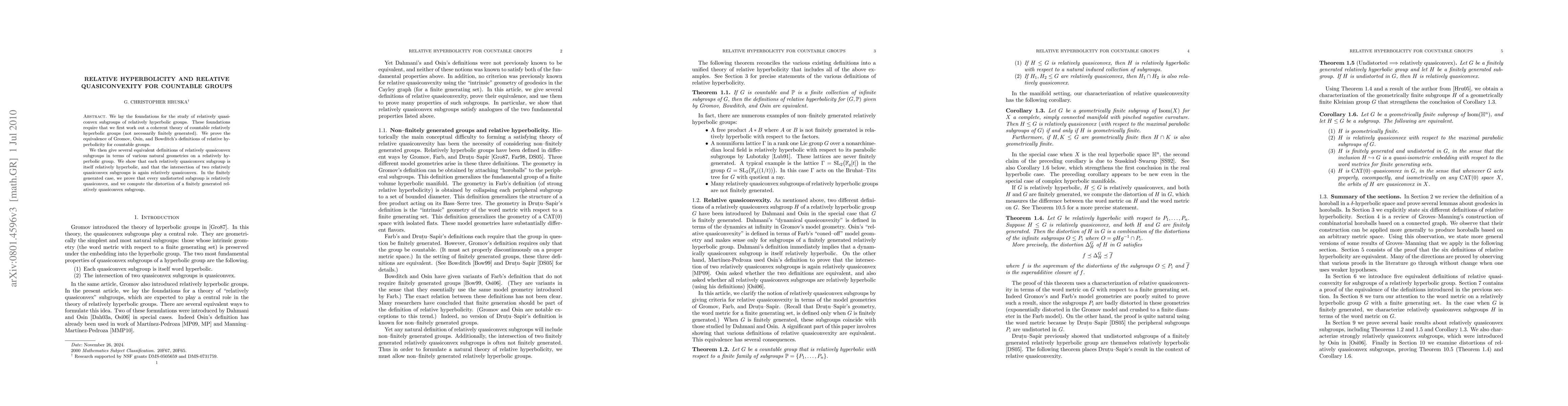 This paper establishes the groundwork for studying relatively quasiconvex subgroups within relatively hyperbolic countable groups, proving equivalences of definitions for relative hyperbolicity and providing several definitions for relative quasiconvexity. The study also demonstrates that relatively quasiconvex subgroups are themselves relatively hyperbolic and that their intersections retain this property.