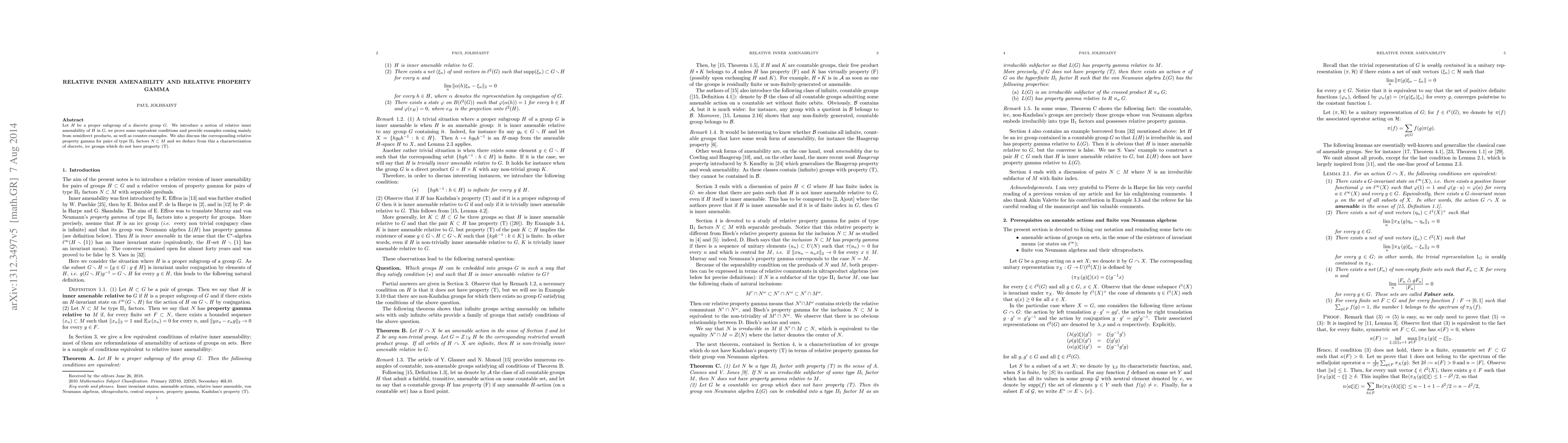 The paper introduces the concept of relative inner amenability for subgroups within discrete groups, providing equivalent conditions and examples, and extends this discussion to relative property gamma for finite factors, ultimately characterizing non-Kazhdan icc groups.
