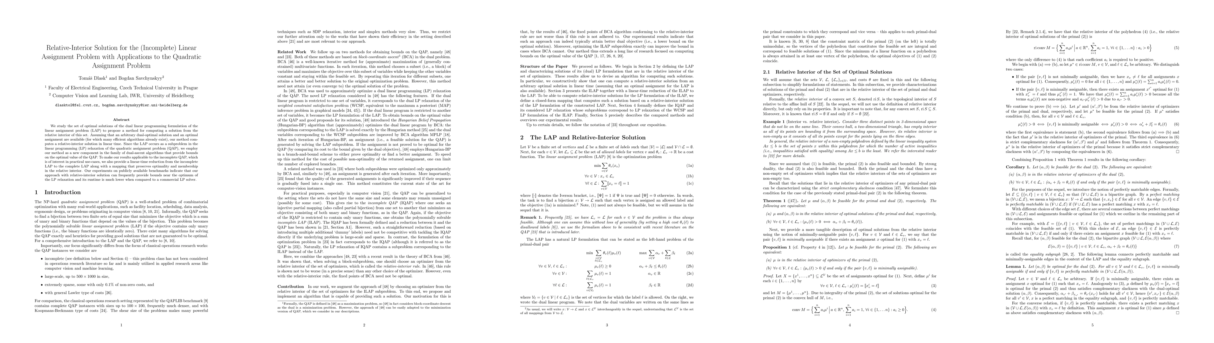 This paper proposes a method to compute a relative-interior solution for the linear assignment problem (LAP) in linear time, leveraging dual-optimal solutions and efficient algorithms. It applies this method to improve dual-ascent algorithms for the quadratic assignment problem (QAP), offering superior bounds on its optimal value, especially for incomplete QAP instances.