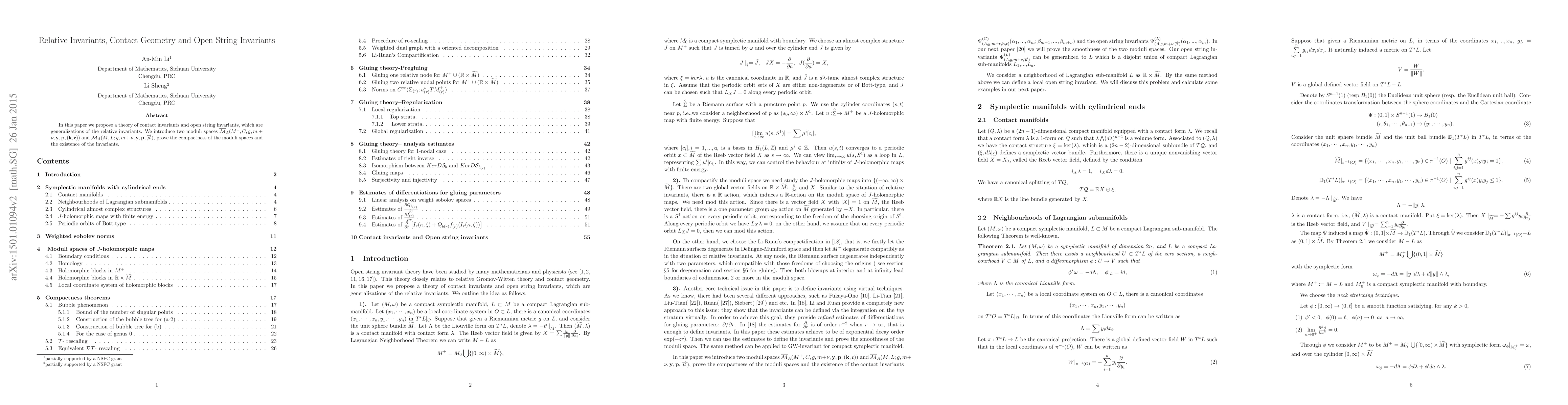 This paper proposes a theory of contact invariants and open string invariants, generalizing relative invariants, and introduces two moduli spaces. It proves the compactness of these moduli spaces and establishes the existence of the proposed invariants.