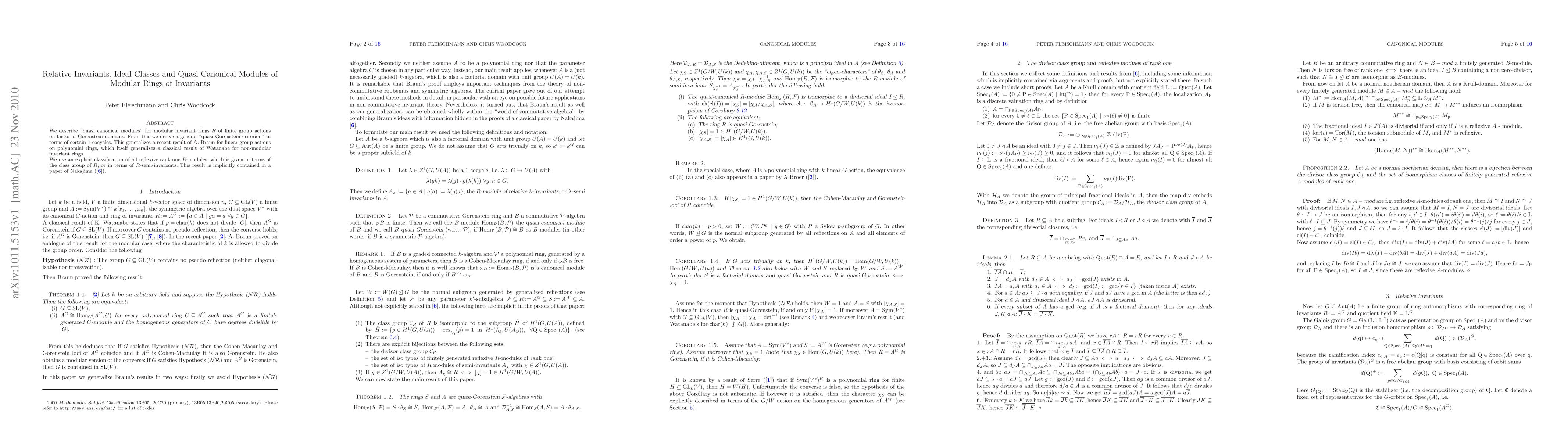 We describe "quasi canonical modules" for modular invariant rings $R$ of finite group actions on factorial Gorenstein domains. From this we derive a general "quasi Gorenstein criterion" in terms of certain 1-cocycles. This generalizes a recent result of A. Braun for linear group actions on polynomial rings, which itself generalizes a classical result of Watanabe for non-modular invariant rings. We use an explicit classification of all reflexive rank one $R$-modules, which is given in terms of the class group of $R$, or in terms of $R$-semi-invariants. This result is implicitly contained in a paper of Nakajima (\cite{Nakajima:rel_inv}).