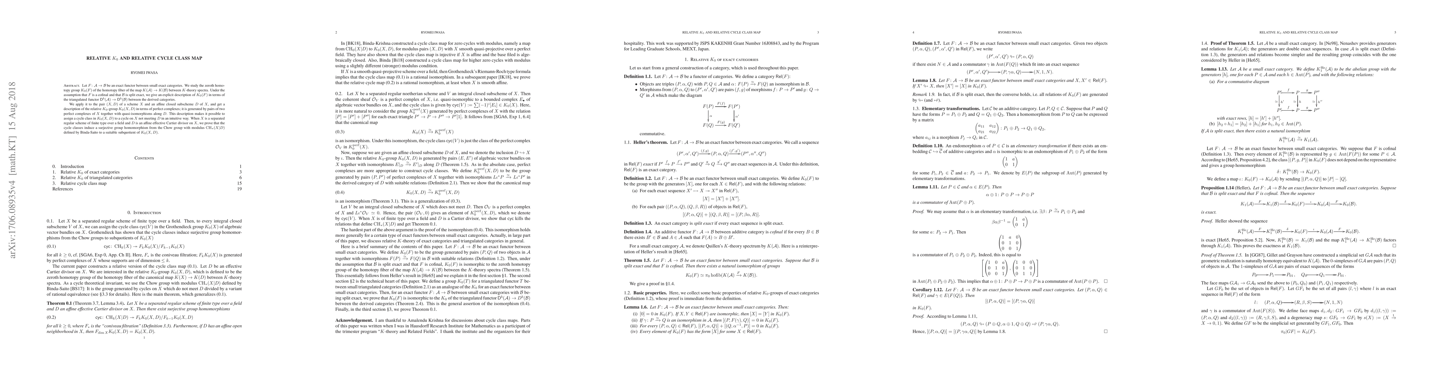 Summary: This paper investigates the relative $K_0$ for exact and triangulated categories and applies this framework to construct a cycle class map linking Chow groups with modulus to relative $K_0$. The study enhances understanding of algebraic cycles and $K$-theory.