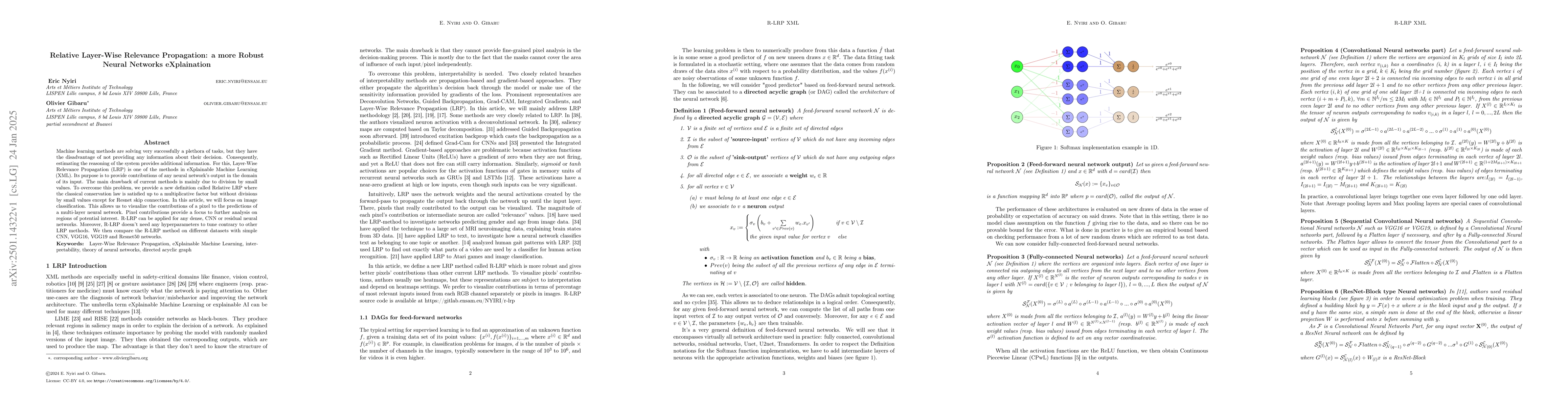 Machine learning methods are solving very successfully a plethora of tasks, but they have the disadvantage of not providing any information about their decision. Consequently, estimating the reasoning of the system provides additional information. For this, Layer-Wise Relevance Propagation (LRP) is one of the methods in eXplainable Machine Learning (XML). Its purpose is to provide contributions of any neural network output in the domain of its input. The main drawback of current methods is mainly due to division by small values. To overcome this problem, we provide a new definition called Relative LRP where the classical conservation law is satisfied up to a multiplicative factor but without divisions by small values except for Resnet skip connection. In this article, we will focus on image classification. This allows us to visualize the contributions of a pixel to the predictions of a multi-layer neural network. Pixel contributions provide a focus to further analysis on regions of potential interest. R-LRP can be applied for any dense, CNN or residual neural networks. Moreover, R-LRP doesn't need any hyperparameters to tune contrary to other LRP methods. We then compare the R-LRP method on different datasets with simple CNN, VGG16, VGG19 and Resnet50 networks.