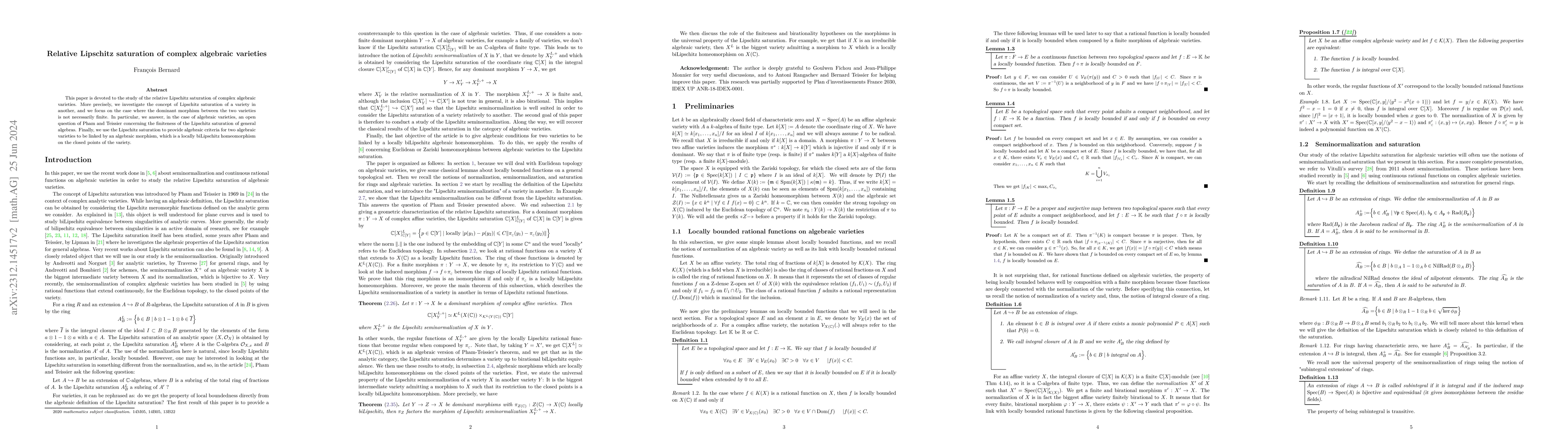 This paper examines the concept of Lipschitz saturation for complex algebraic varieties, specifically addressing the open question of Pham and Teissier regarding its finiteness in general cases. It also develops criteria for linking algebraic varieties through locally biLipschitz homeomorphisms.
