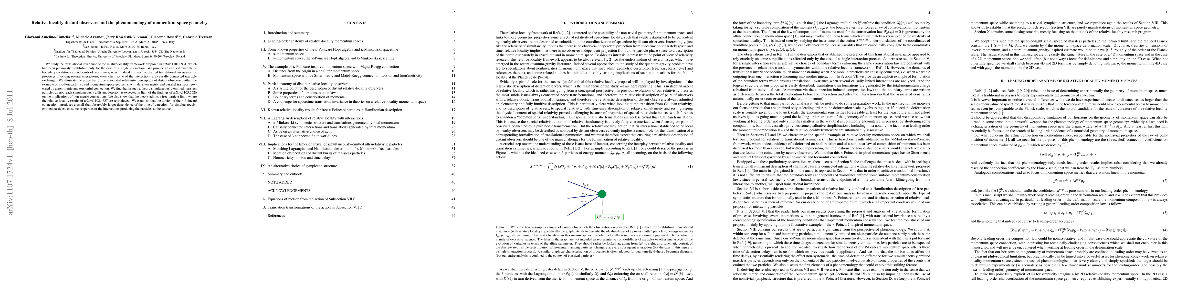 We study the translational invariance of the relative-locality framework proposed in arXiv:1101.0931, which had been previously established only for the case of a single interaction. We provide an explicit example of boundary conditions at endpoints of worldlines, which indeed ensures the desired translational invariance for processes involving several interactions, even when some of the interactions are causally connected (particle exchange). We illustrate the properties of the associated relativistic description of distant observers within the example of a $\kappa$-Poincar\'e-inspired momentum-space geometry, with de Sitter metric and parallel transport governed by a non-metric and torsionful connection. We find that in such a theory simultaneously-emitted massless particles do not reach simultaneously a distant detector, as expected in light of the findings of arXiv:1103.5626 on the implications of non-metric connections. We also show that the theory admits a free-particle limit, where the relative-locality results of arXiv:1102.4637 are reproduced. We establish that the torsion of the $\kappa$-Poincar\'e connection introduces a small (but observably-large) dependence of the time of detection, for simultaneously-emitted particles, on some properties of the interactions producing the particles at the source.