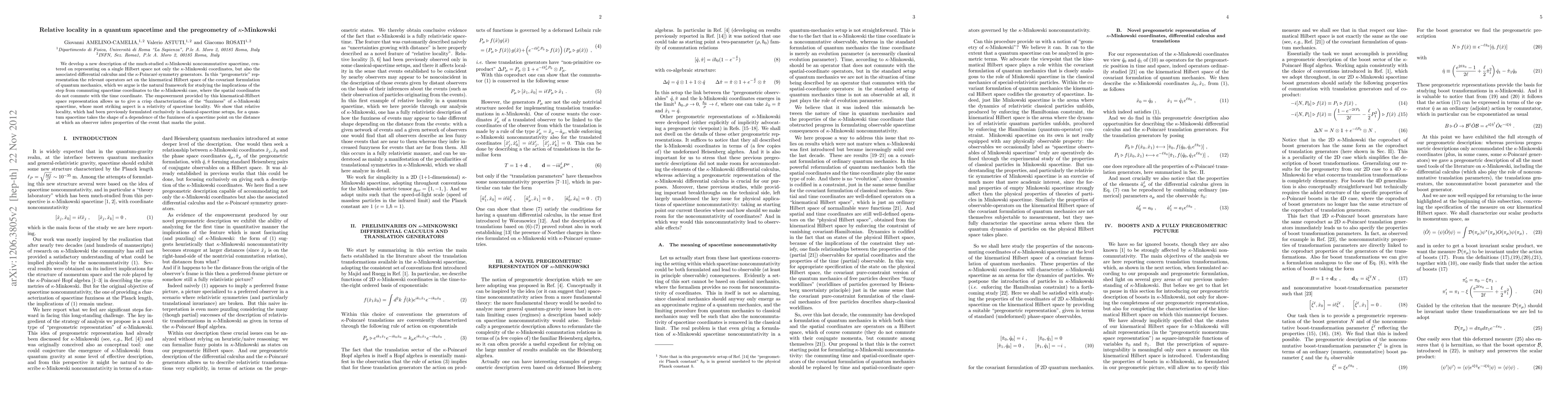 We develop a new description of the much-studied $\kappa$-Minkowski noncommutative spacetime, centered on representing on a single Hilbert space not only the $\kappa$-Minkowski coordinates, but also the associated differential calculus and the $\kappa$-Poincar\'e symmetry generators. In this "pregeometric" representation the relevant operators act on the kinematical Hilbert space of the covariant formulation of quantum mechanics, which we argue is the natural framework for studying the implications of the step from commuting spacetime coordinates to the $\kappa$-Minkowski case, where the spatial coordinates do not commute with the time coordinate. The empowerment provided by this kinematical-Hilbert space representation allows us to give a crisp characterization of the "fuzziness" of $\kappa$-Minkowski spacetime, whose most striking aspect is a relativity of spacetime locality. We show that relative locality, which had been previously formulated exclusively in classical-spacetime setups, for a quantum spacetime takes the shape of a dependence of the fuzziness of a spacetime point on the distance at which an observer infers properties of the event that marks the point.