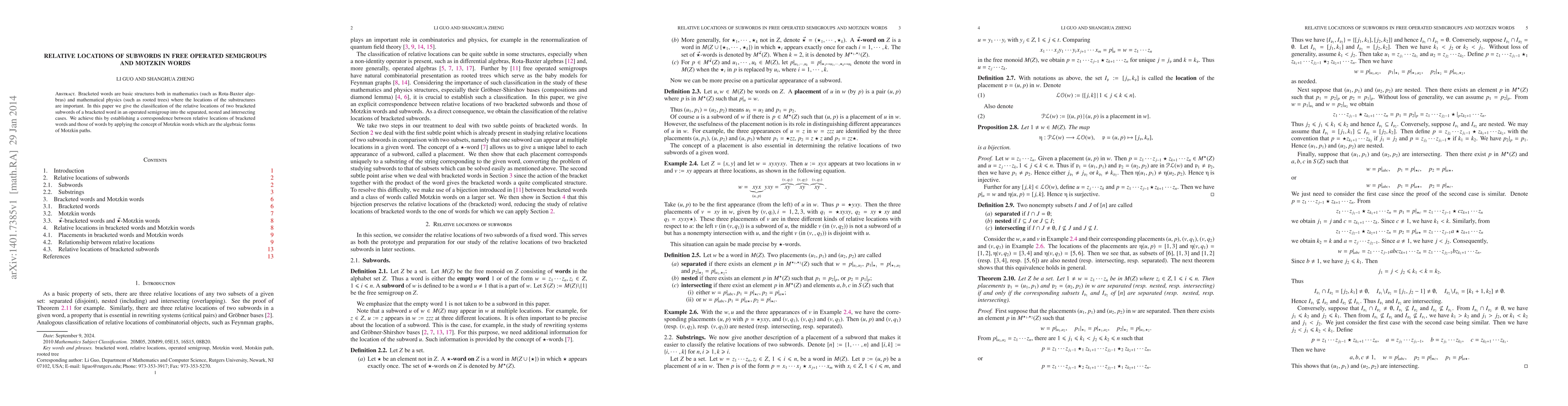 This paper classifies the relative locations of two bracketed subwords within a bracketed word in an operated semigroup into separated, nested, and intersecting categories. It achieves this by establishing a correspondence between these bracketed structures and Motzkin words, which represent Motzkin paths algebraically.