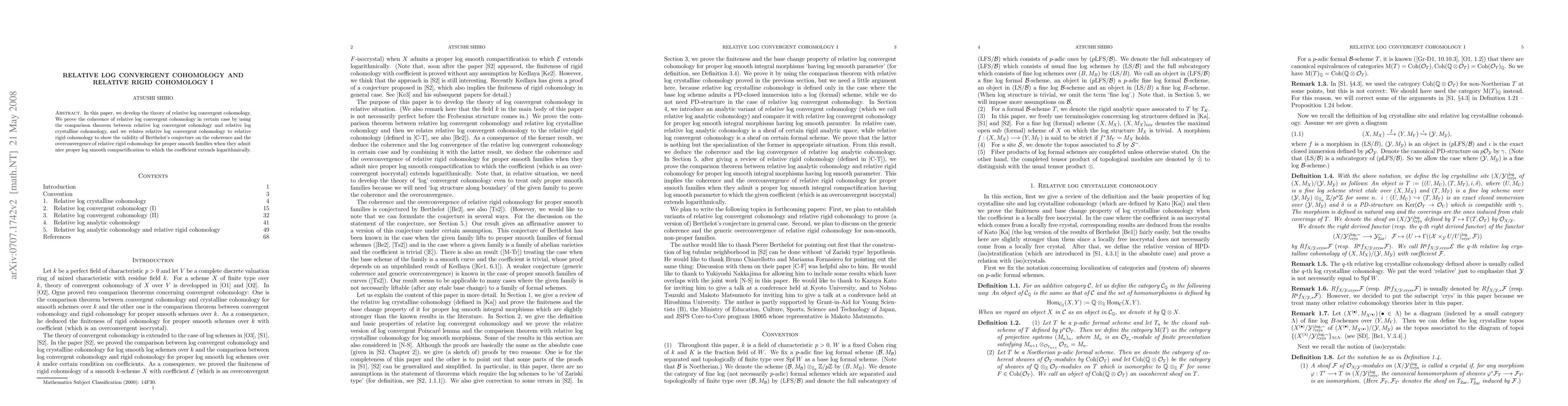 This paper develops the theory of relative log convergent cohomology, proving its coherence via a comparison with relative log crystalline cohomology and linking it to relative rigid cohomology to validate Berthelot's conjecture on the coherence and overconvergence of relative rigid cohomology in specific contexts.