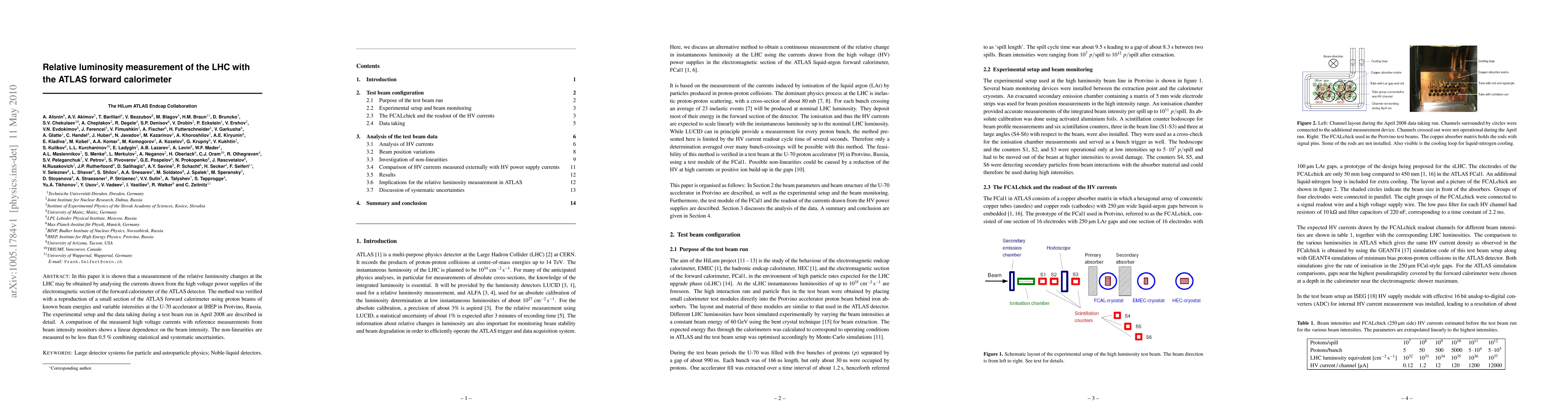 Researchers developed a method to measure relative luminosity changes at the Large Hadron Collider using currents from high-voltage power supplies in the ATLAS forward calorimeter. The measurement showed linear dependence on beam intensity with non-linearities less than 0.5%.