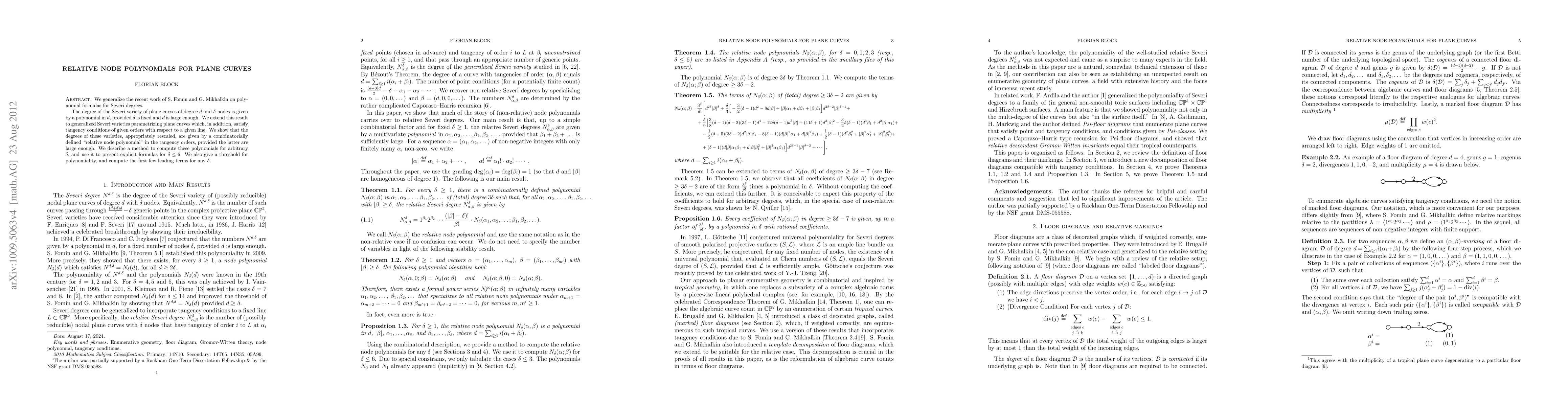 Researchers develop a method to compute relative node polynomials for plane curves with tangency conditions, generalizing previous work on Severi degrees, providing explicit formulas for small delta values.