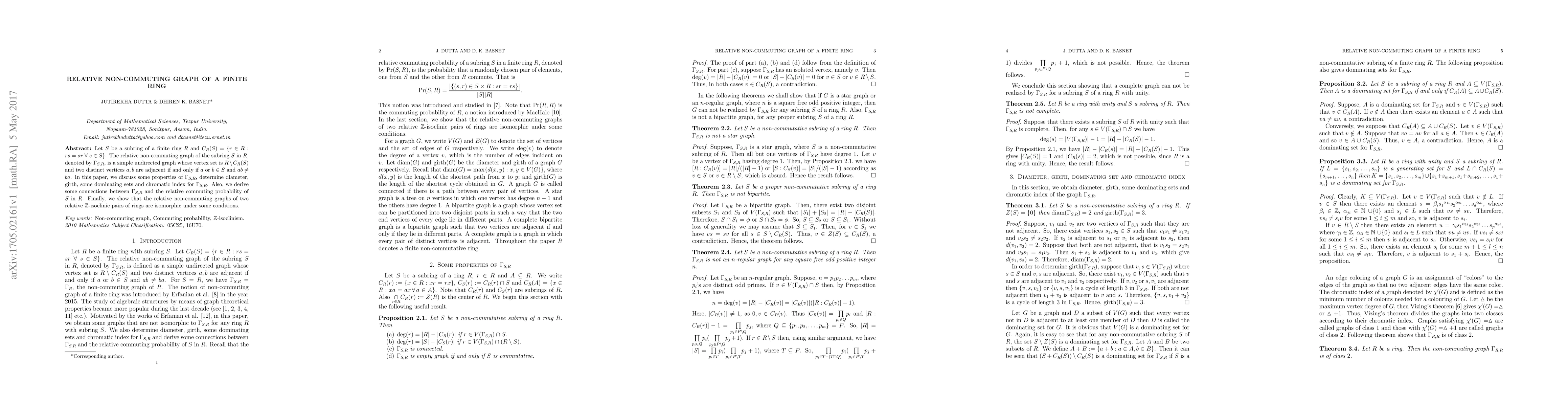 This paper explores the properties of the relative non-commuting graph $\Gamma_{S, R}$ of a subring $S$ in a finite ring $R$, including its diameter, girth, dominating sets, and chromatic index. It also investigates connections between $\Gamma_{S, R}$ and the relative commuting probability of $S$ in $R$, and demonstrates isomorphism conditions for relative non-commuting graphs of $\Z$-isoclinic pairs of rings.