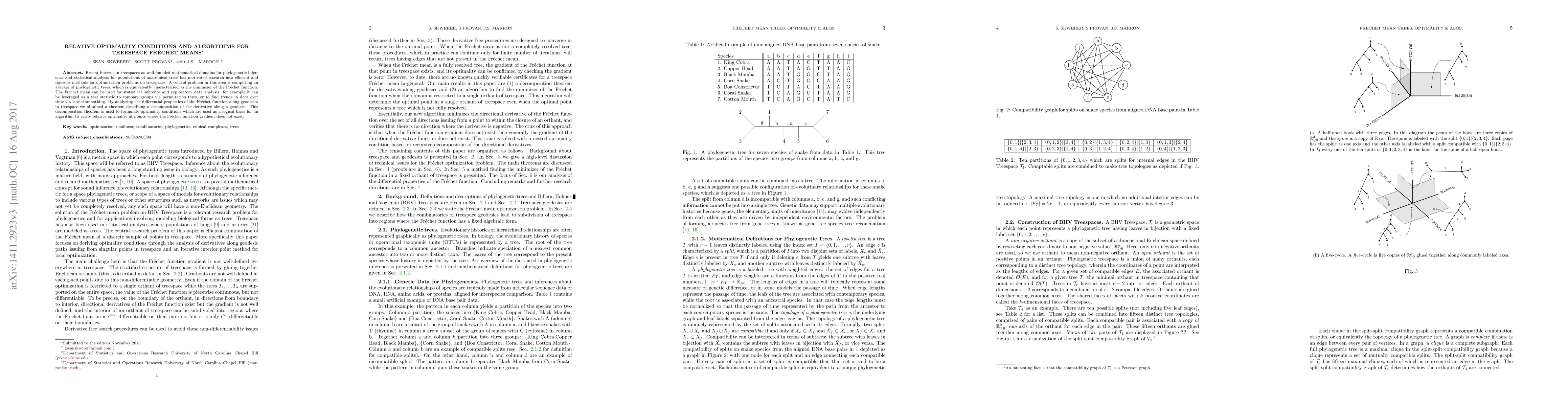 This paper develops optimality conditions and algorithms for computing the Fréchet mean on treespace, a mathematical domain for phylogenetic inference. It leverages differential properties and geodesic decompositions to formulate conditions for verifying relative optimality, even in cases where the gradient of the Fréchet function is not defined.