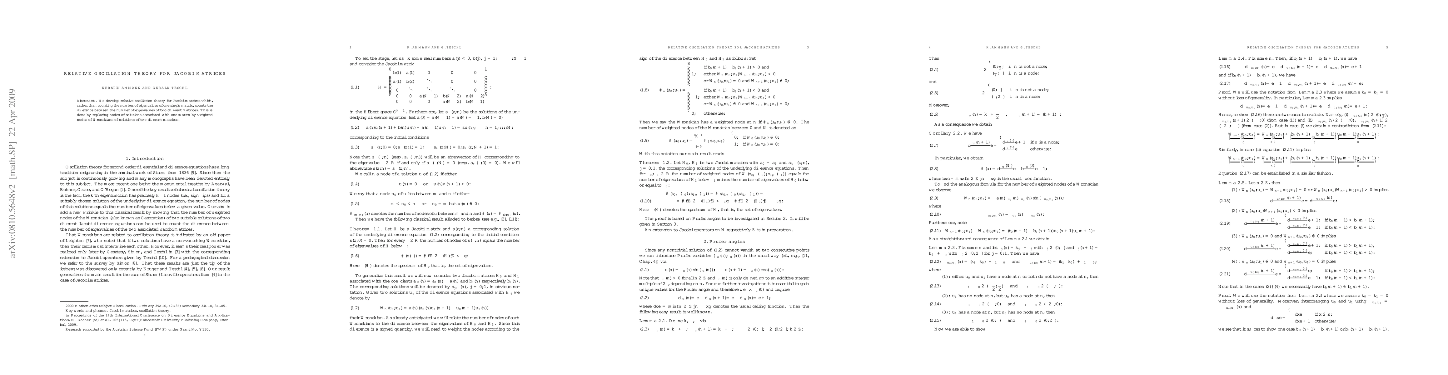 This paper develops a new method for analyzing Jacobi matrices called relative oscillation theory, which compares the number of eigenvalues between two different matrices by using weighted nodes of Wronskians.