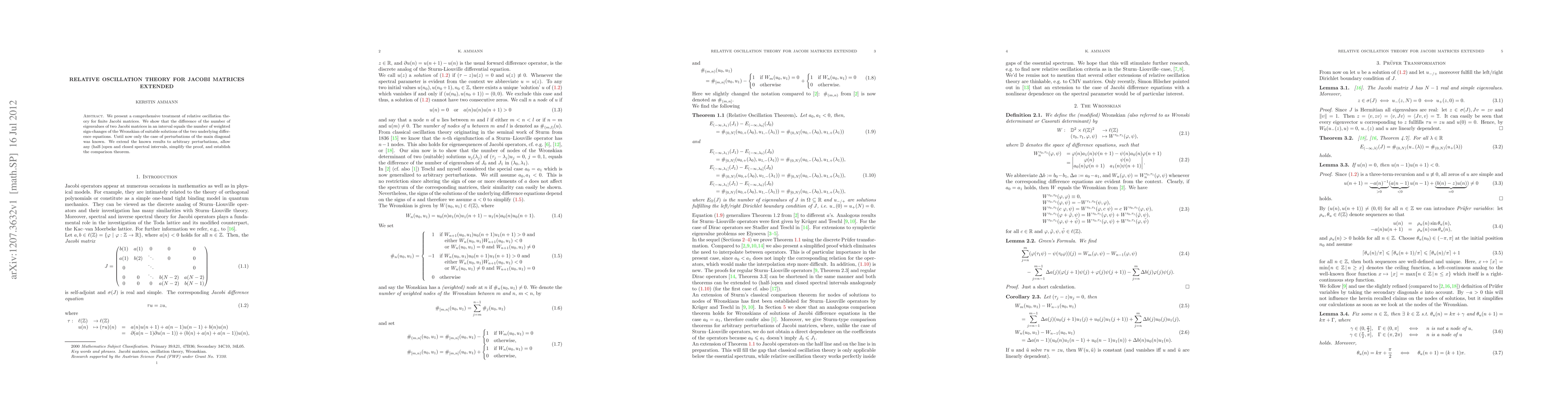 Researchers extend relative oscillation theory to Jacobi matrices with arbitrary perturbations, simplifying proof and establishing a comparison theorem for different spectral intervals.