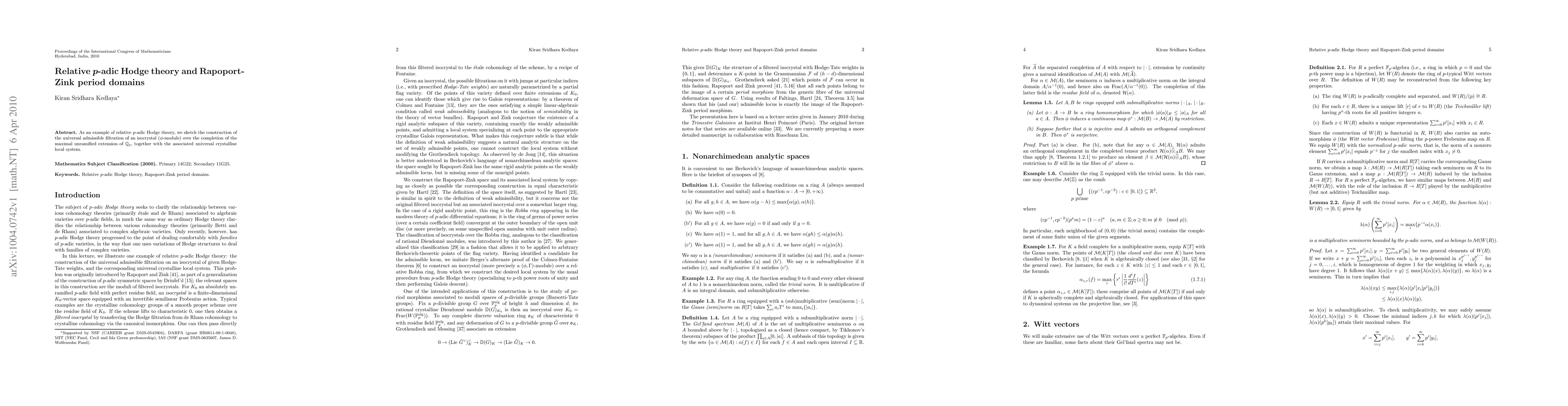 As an example of relative p-adic Hodge theory, we sketch the construction of the universal admissible filtration of an isocrystal (\phi$-module) over the completion of the maximal unramified extension of Q_p, together with the associated universal crystalline local system.