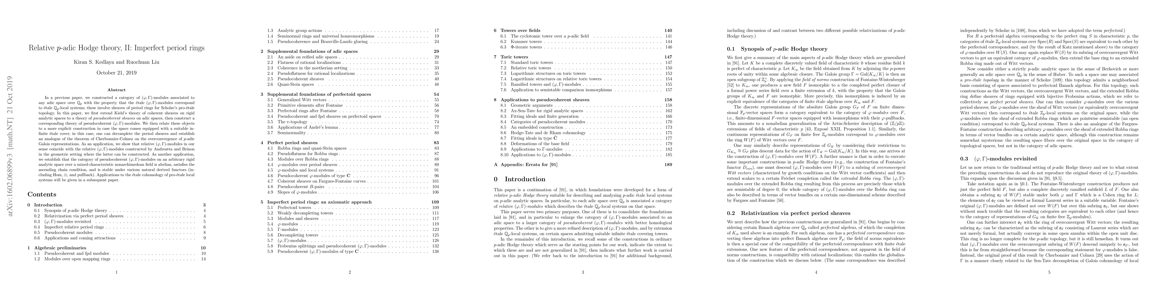 This paper extends Kiehl's theory of coherent sheaves to pseudocoherent sheaves on adic spaces and constructs pseudocoherent (phi, Gamma)-modules. It relates these to decompleted period sheaves and establishes an analogue of the theorem on the overconvergence of p-adic Galois representations, showing that relative (phi, Gamma)-modules coincide with those constructed by Andreatta and Brinon in geometric settings.