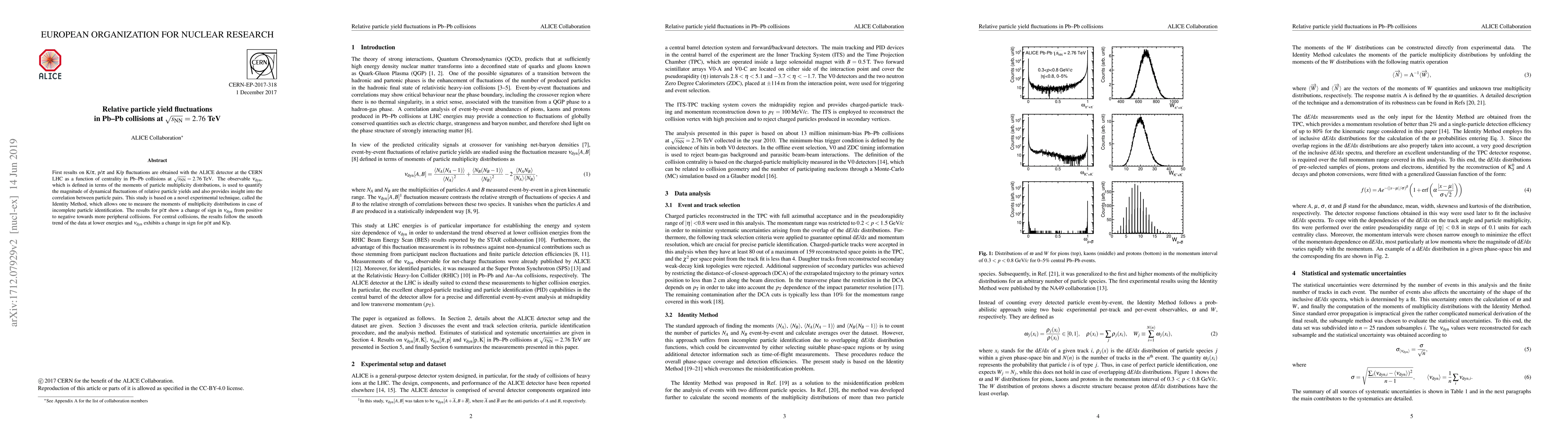The research utilized the ALICE detector at the CERN LHC to measure relative particle yield fluctuations in Pb-Pb collisions at √sNN=2.76 TeV, employing the Identity Method for moments of multiplicity distributions with incomplete particle identification.